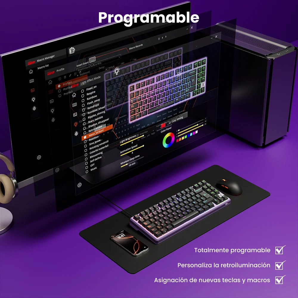Software DIY efecto de luz potente macros de juego Programable con teclas completas.