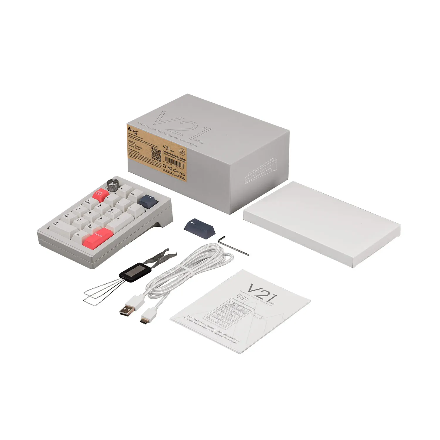 Comprar Teclado mecánico Cidoo V21 Pro con almohadilla de aluminio, compatible con a través de Bluetooth 2,4G, montaje de junta con cable RGB, proceso CNC LED voltado sur