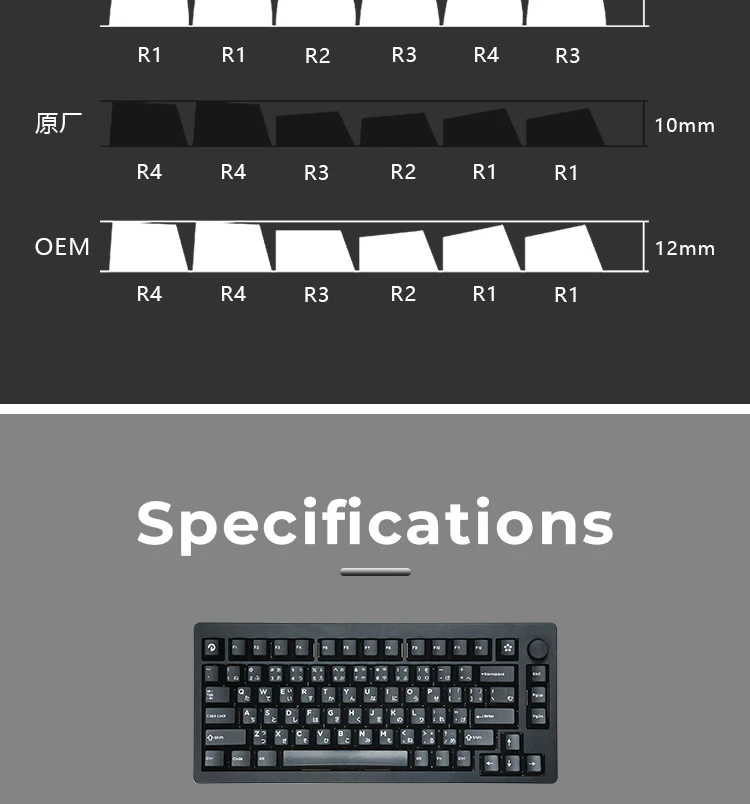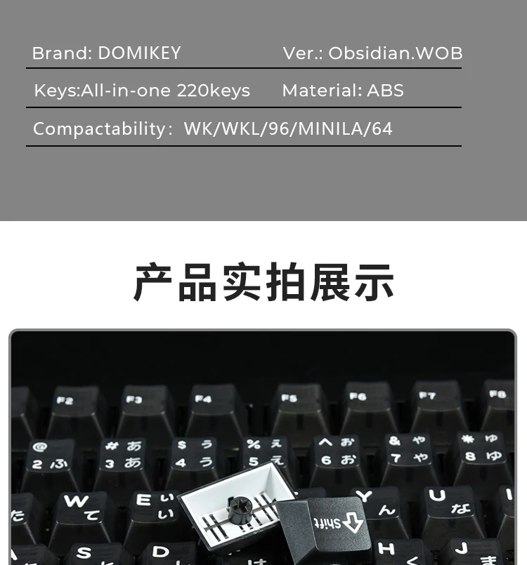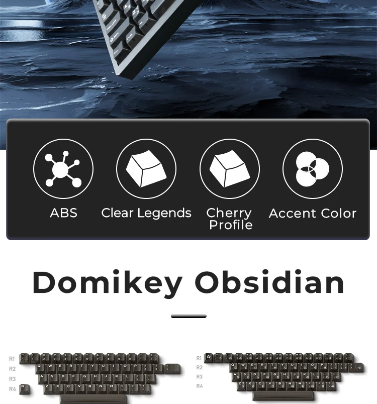 Comprar Teclado mecánico Domikey Obsidian WOB Cherry Profile ABS teclas negro blanco Triple doble japonés negro translúcido teclas