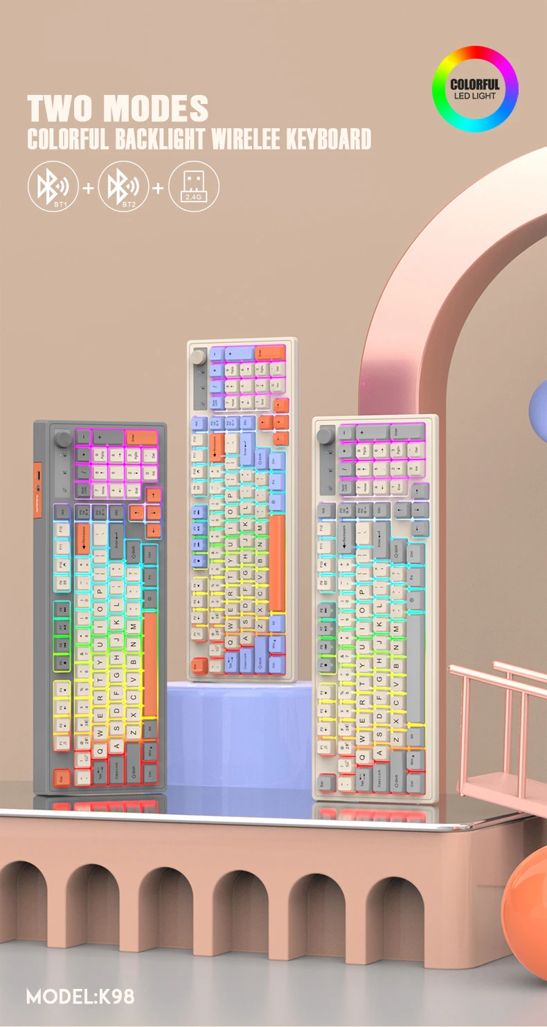 Teclado Bluetooth dual K98 Teclado inalámbrico BT/2.4G de modos duales