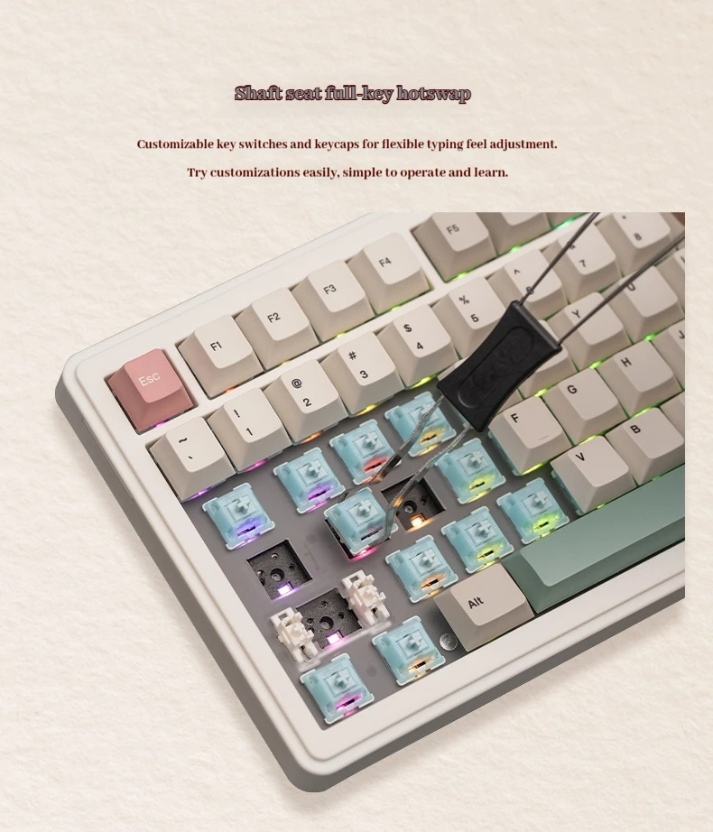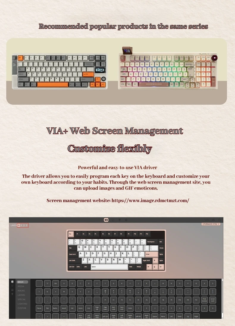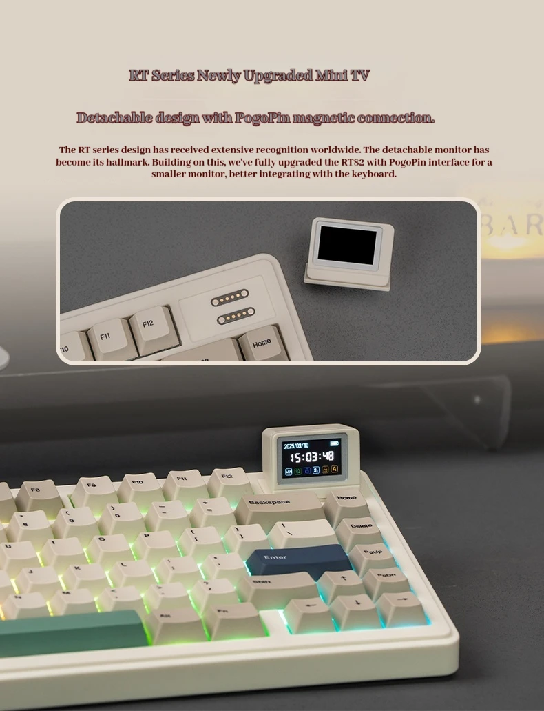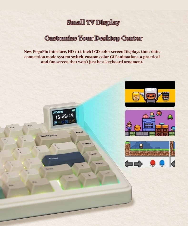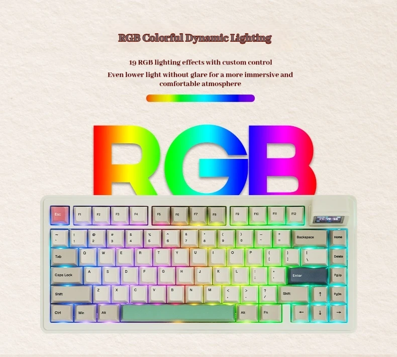 Teclado mecánico Epomaker Rt82, pantalla de modo Thri, estructura de puerta de enlace Rgb, animación personalizada, teclado personalizado con enchufe caliente