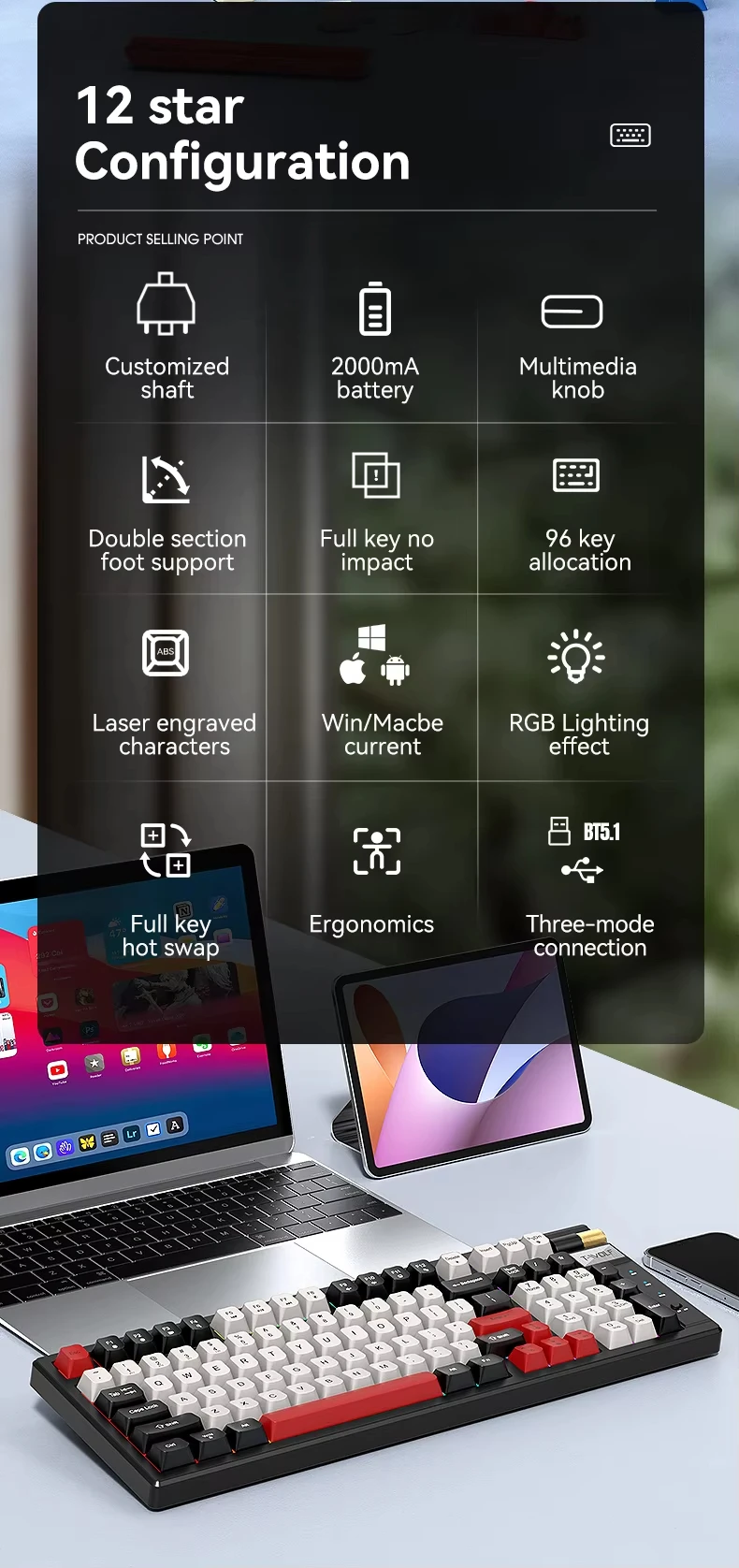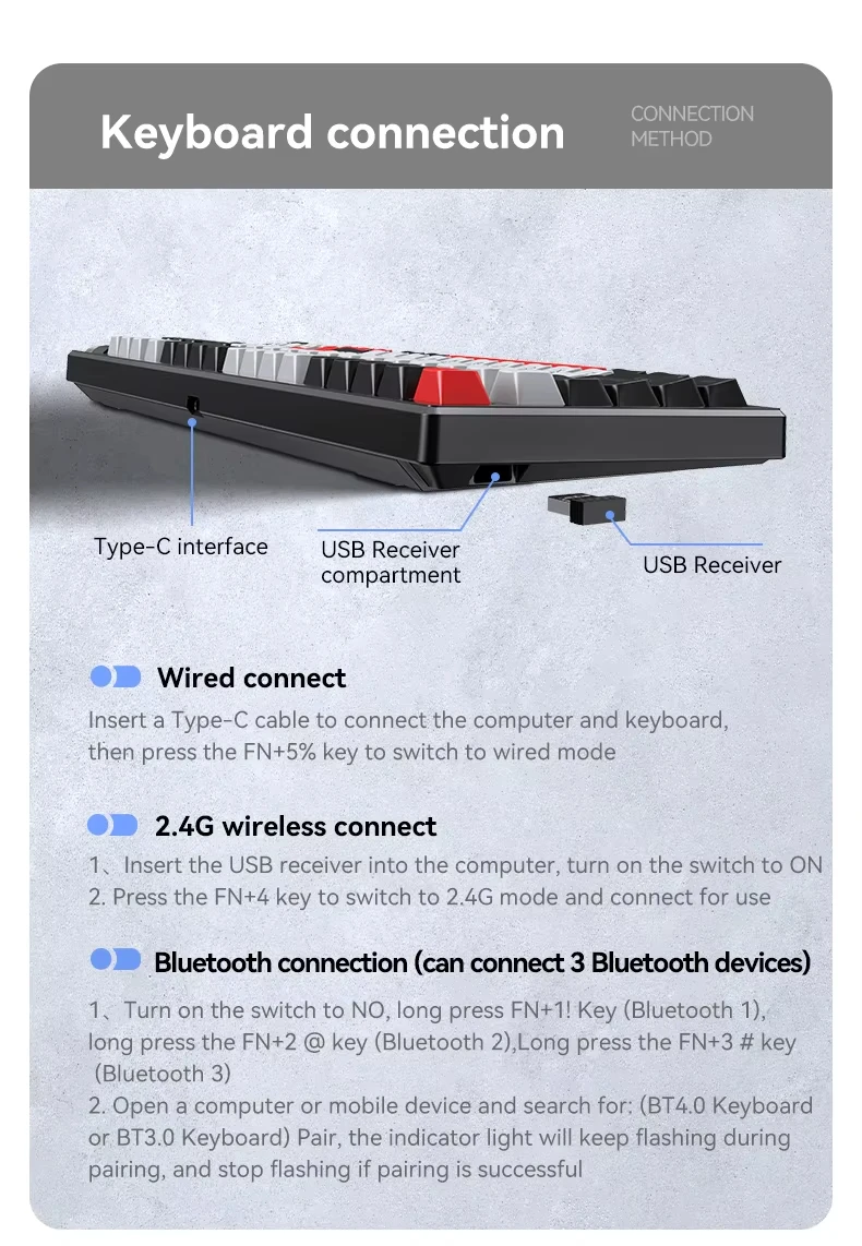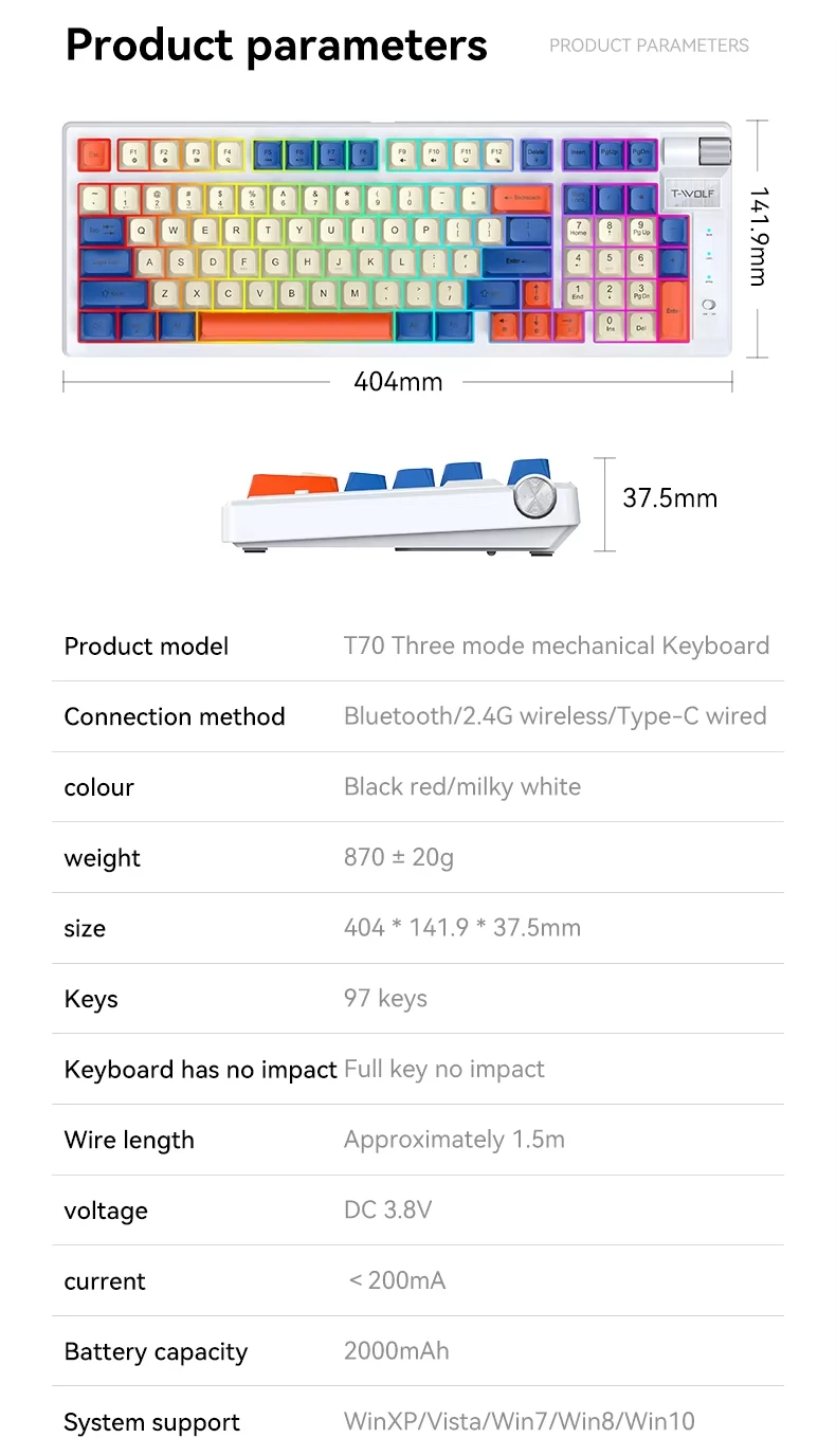 Teclado mecánico ergonómico para ordenador Bluetooth, teclado mecánico RGB de 97 teclas intercambiable en caliente, inalámbrico, recargable, para juegos y PC