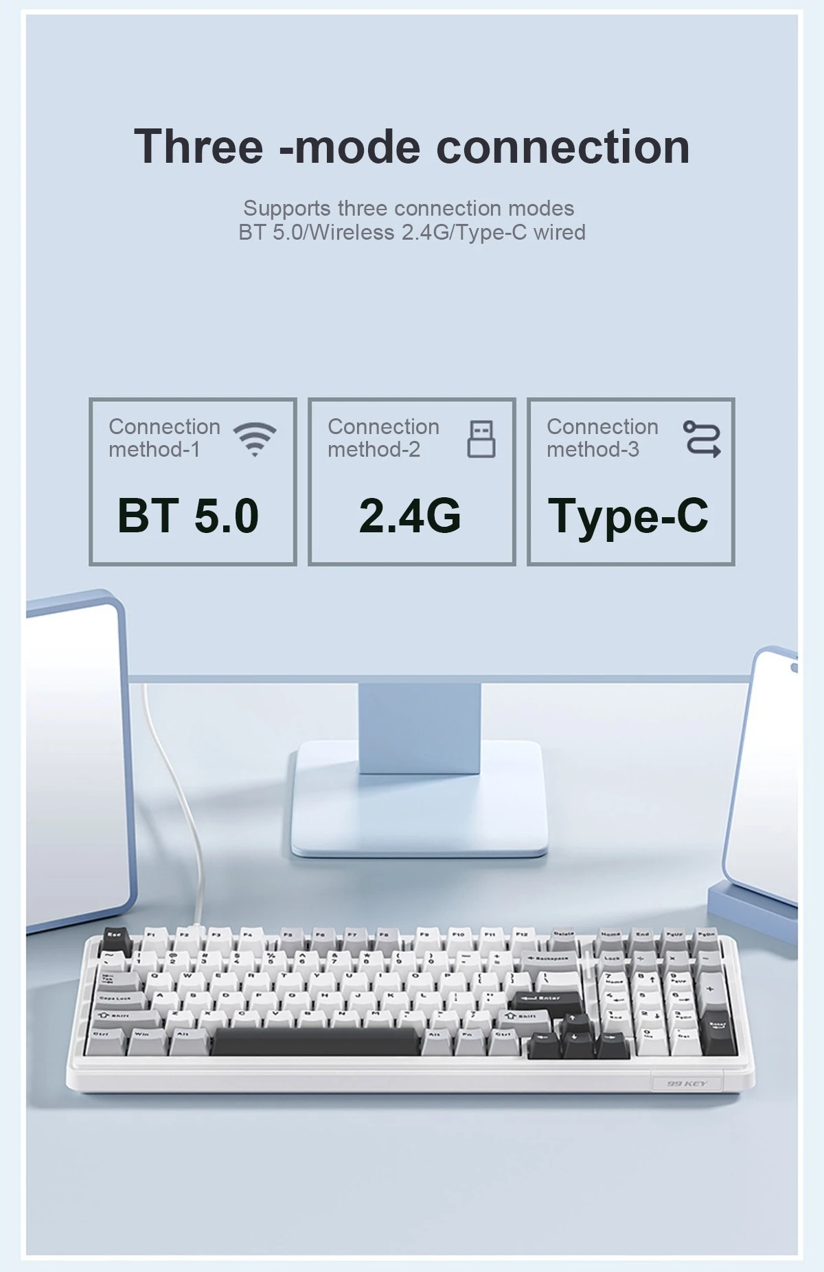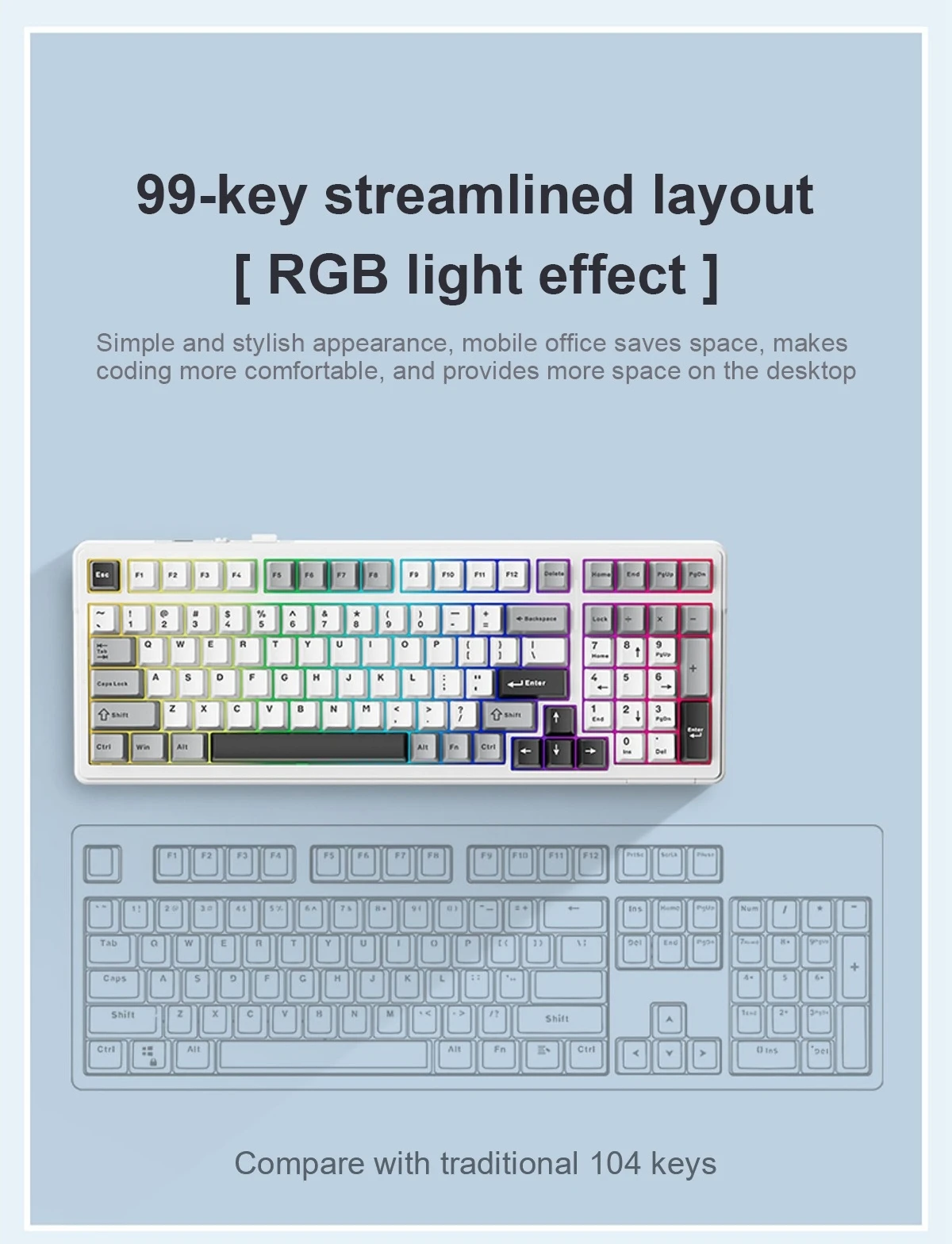 Comprar Teclado mecánico F99 99 teclas 100% diseño intercambiable en caliente Teclado mecánico inalámbrico Bluetooth tipo C conectar luz RGB baja latencia