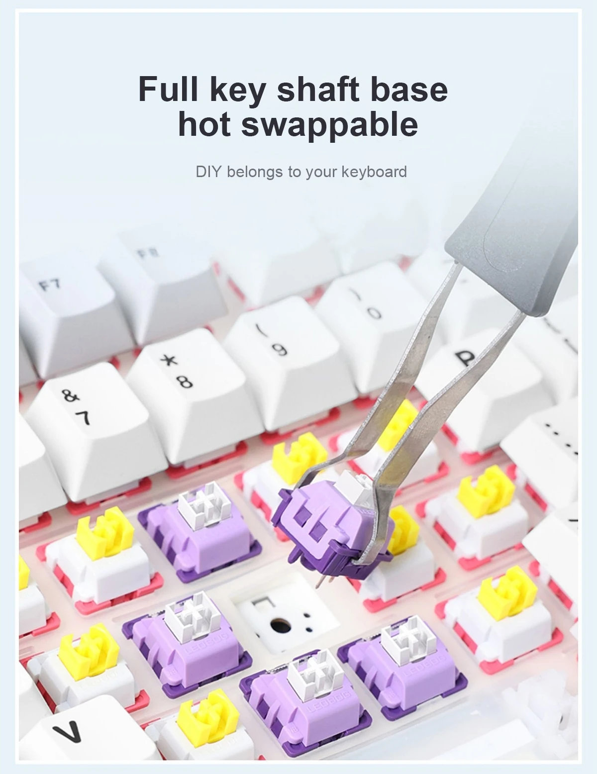 3--PCB intercambiable en caliente, compatible con interruptor de 3 pines/5 pines: F99 está equipado con PCB intercambiable en caliente para garantizar el reemplazo o cambio gratuito de interruptores.Es compatible con la mayoría de los interruptores mecánicos de 3 y 5 pines.;