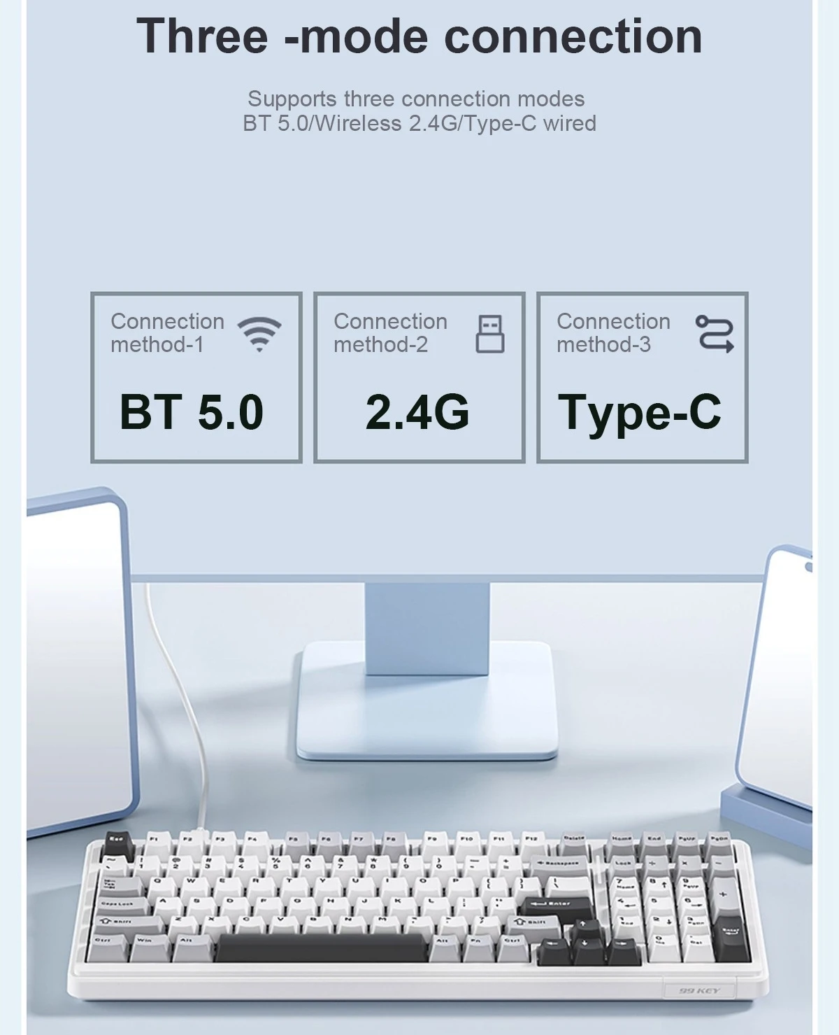 Comprar Teclado mecánico F99 99 teclas 100% diseño intercambiable en caliente Teclado mecánico inalámbrico Bluetooth tipo C conectar luz RGB baja latencia