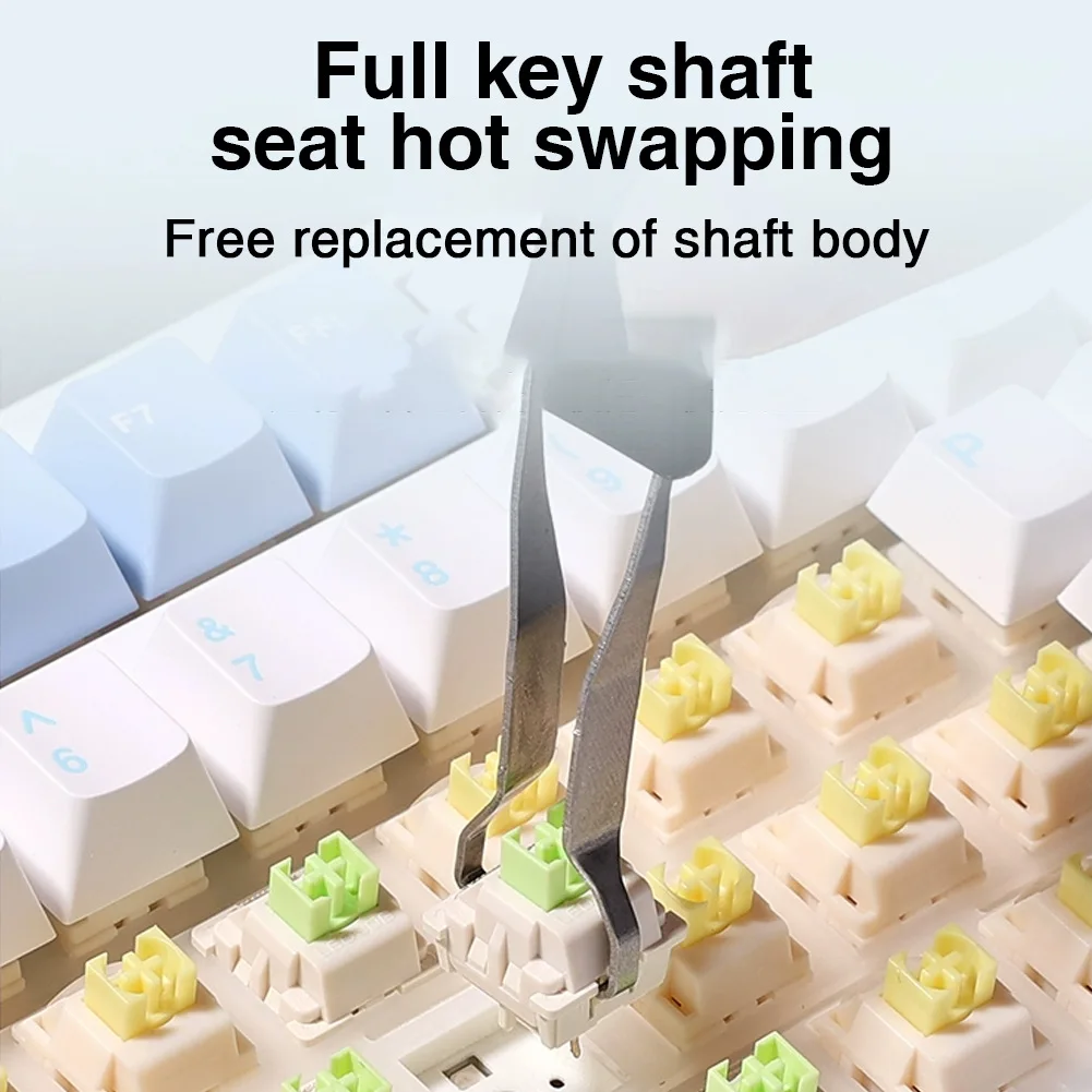 3--PCB intercambiable en caliente, compatible con interruptor de 3 pines/5 pines: F99 está equipado con PCB intercambiable en caliente para garantizar el reemplazo o cambio gratuito de interruptores.Es compatible con la mayoría de los interruptores mecánicos de 3 y 5 pines.;