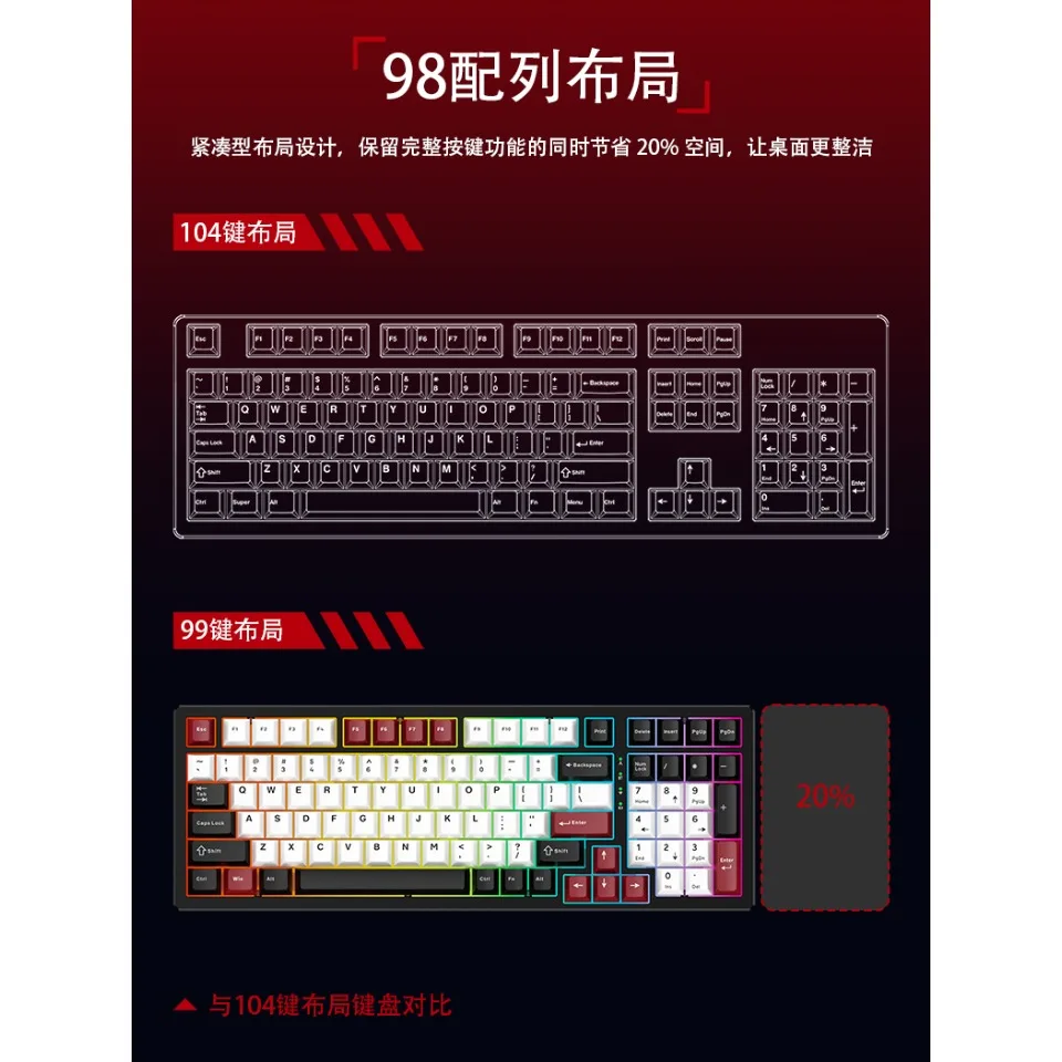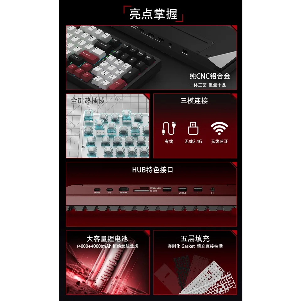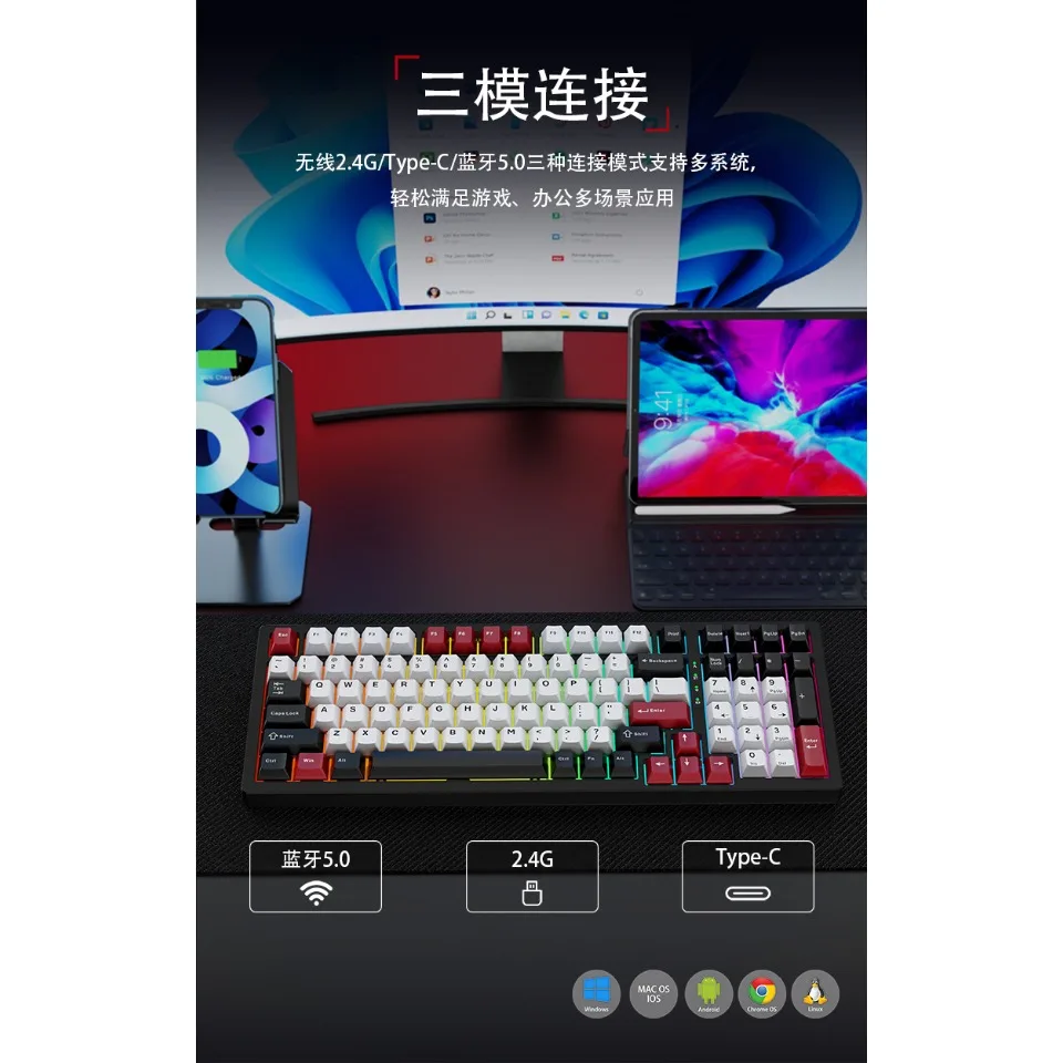 Teclado Mecánico FH98 Tri-Modo Intercambiable en Caliente RGB Personalizable CNC Aluminio Ergonómico Teclado Gaming Accesorios de Oficina Regalo