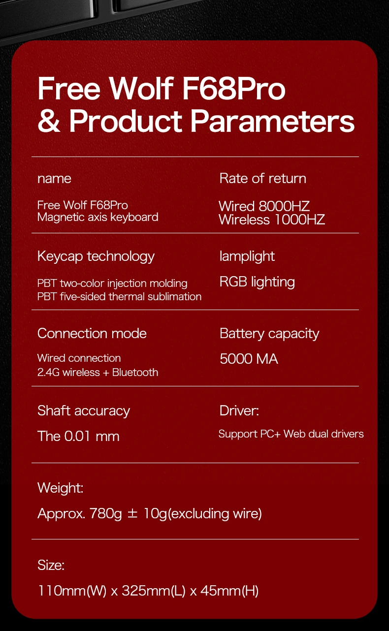Nombre: Teclado de eje magnético Wolf F68Pro gratuito