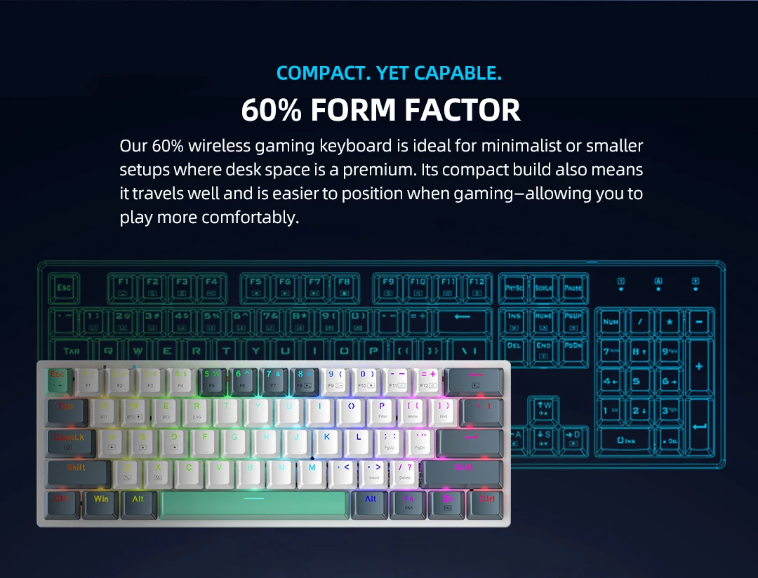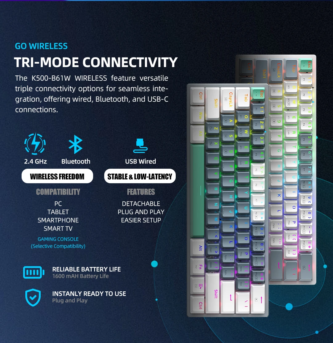 Teclado Mecánico Gamer MACHENIKE K500 60% Tri-Modal Inalámbrico Hot-Swap, Layout Latinoamericano para PC