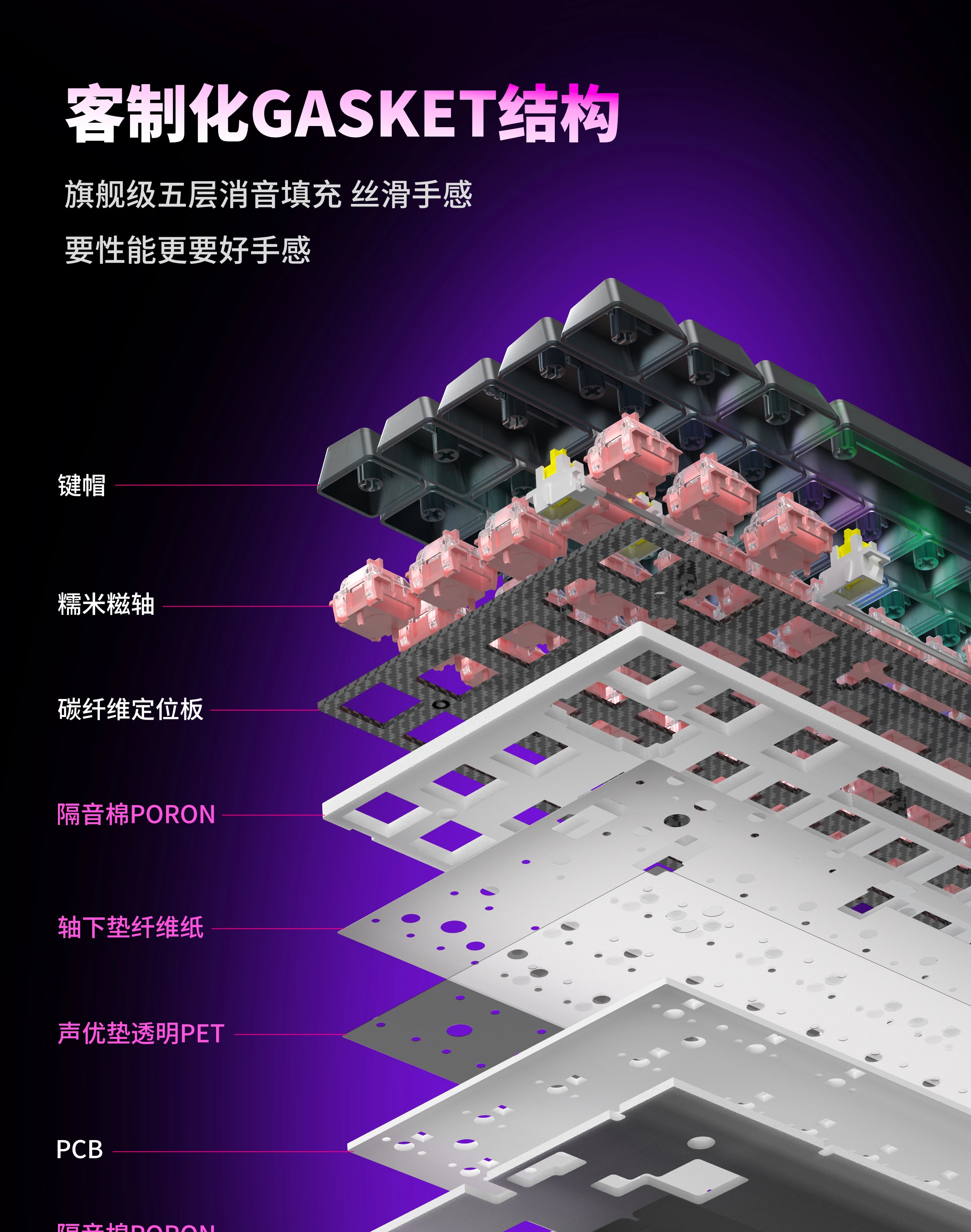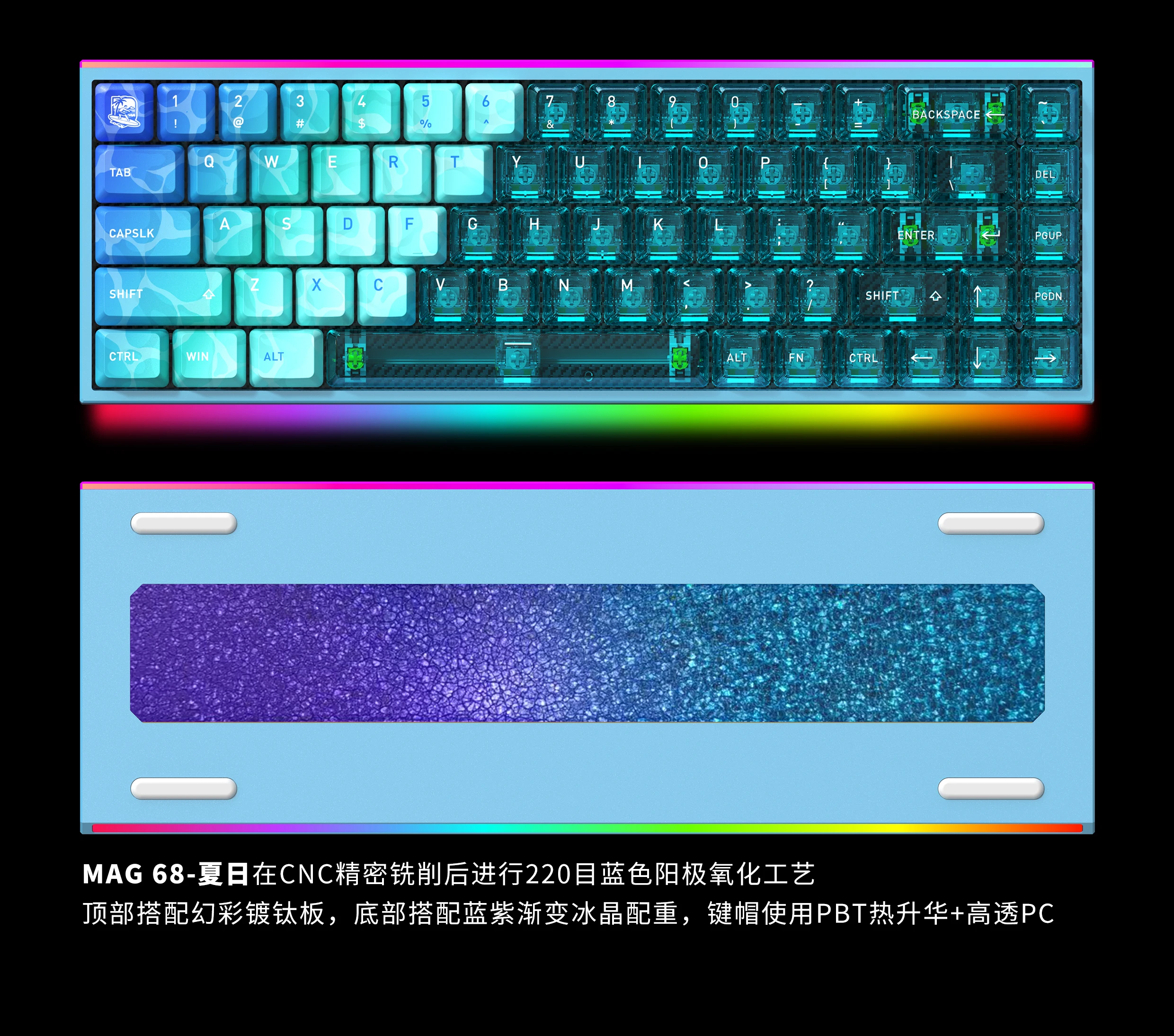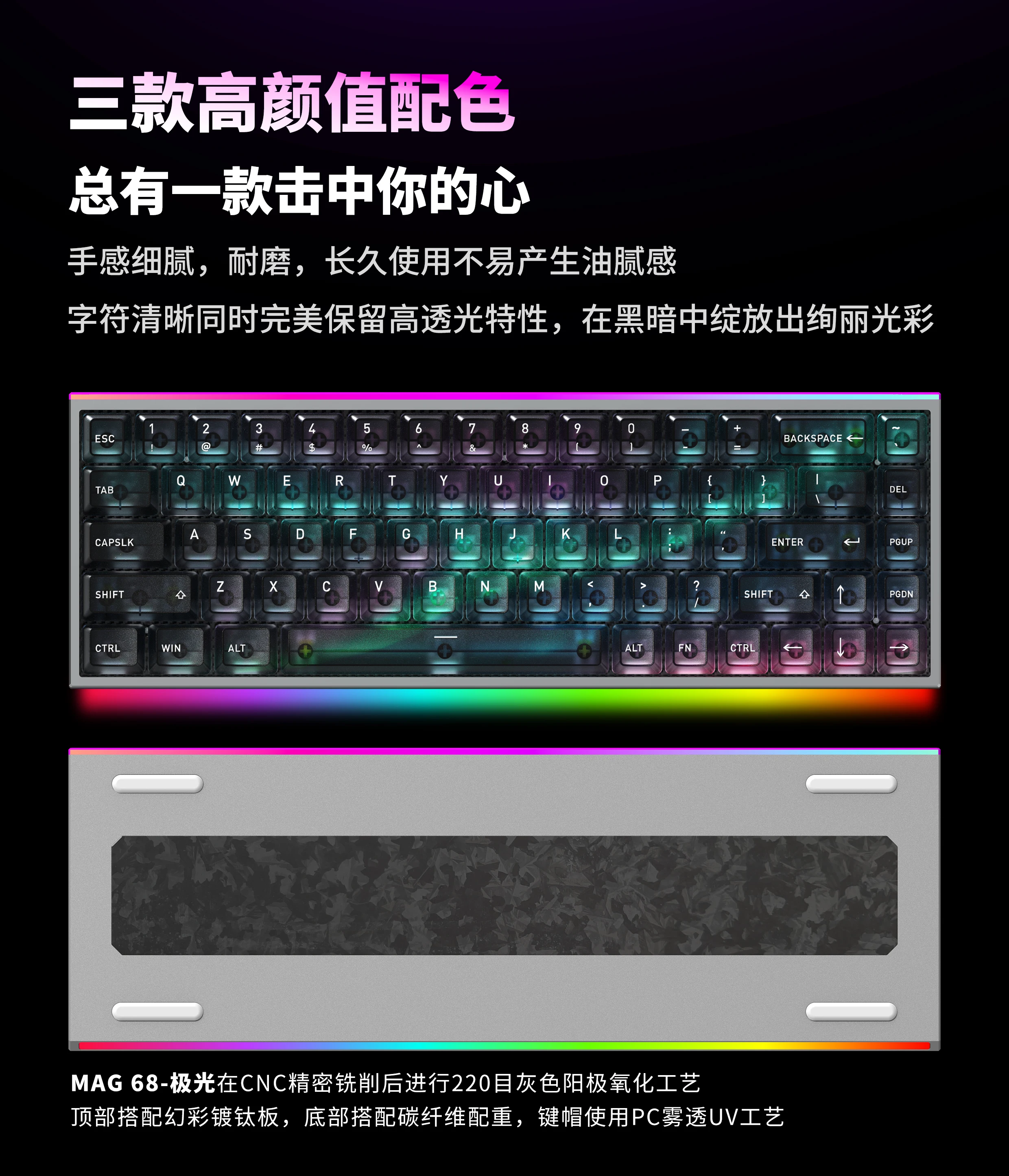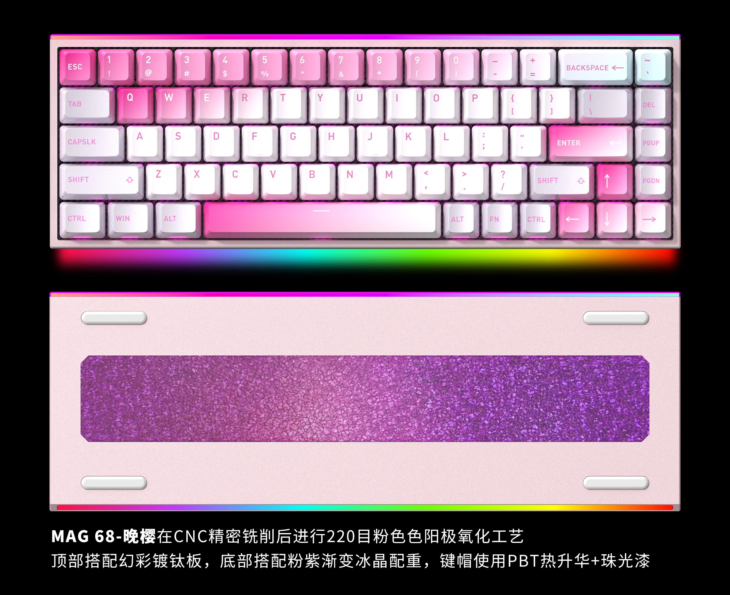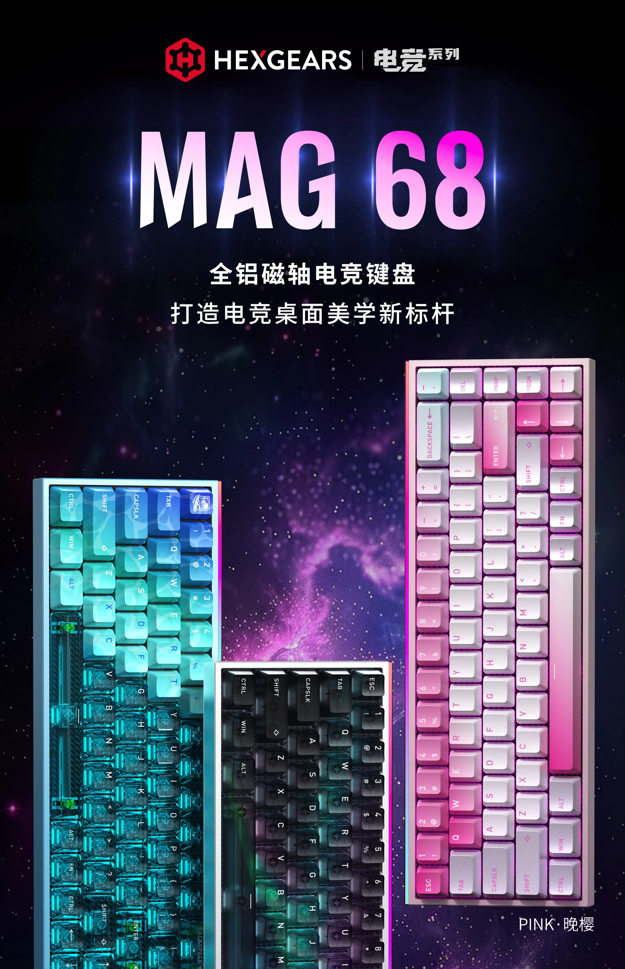 Teclado mecánico HEXGEARS MAG68 eje magnético teclado de juego con junta de aluminio transparente con cable RGB personalizado de baja latencia