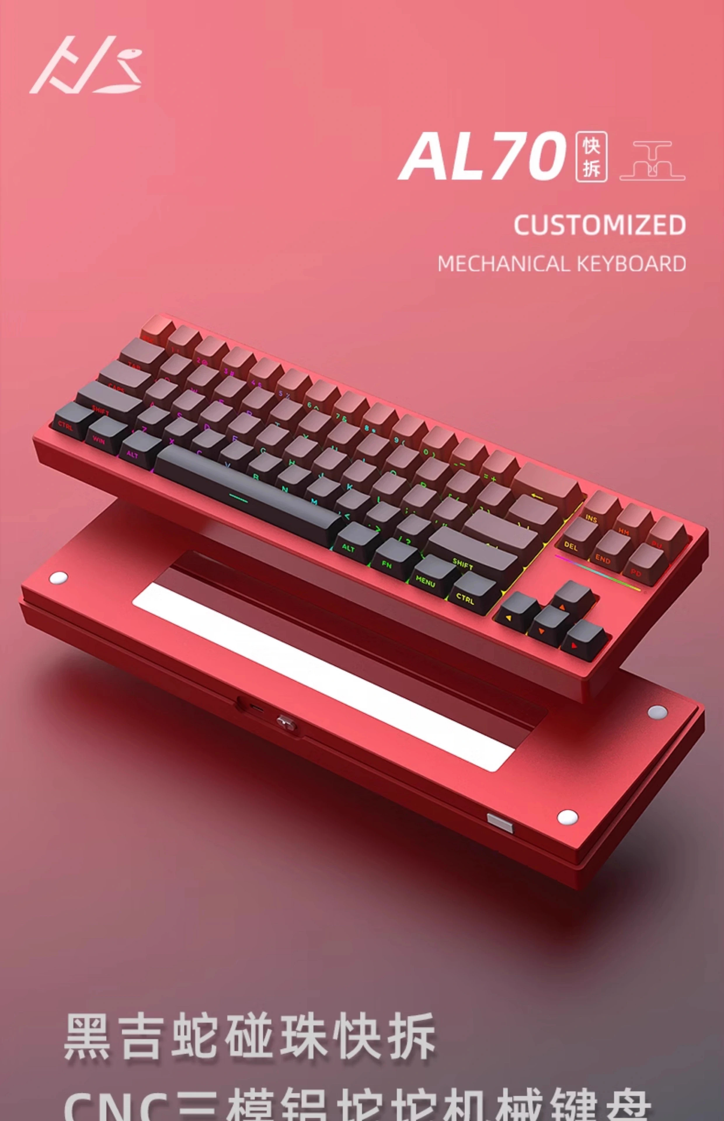Teclado mecánico HJS AL70 personalizado Tri-modo inalámbrico de aluminio intercambio en caliente RGB 70layout junta E-sports teclado de oficina para juegos