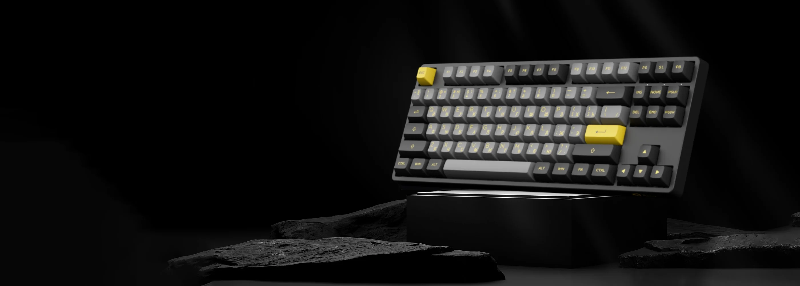 Fabricado en plástico PBT de doble disparo, conocido por su durabilidad y resistencia al brillo.