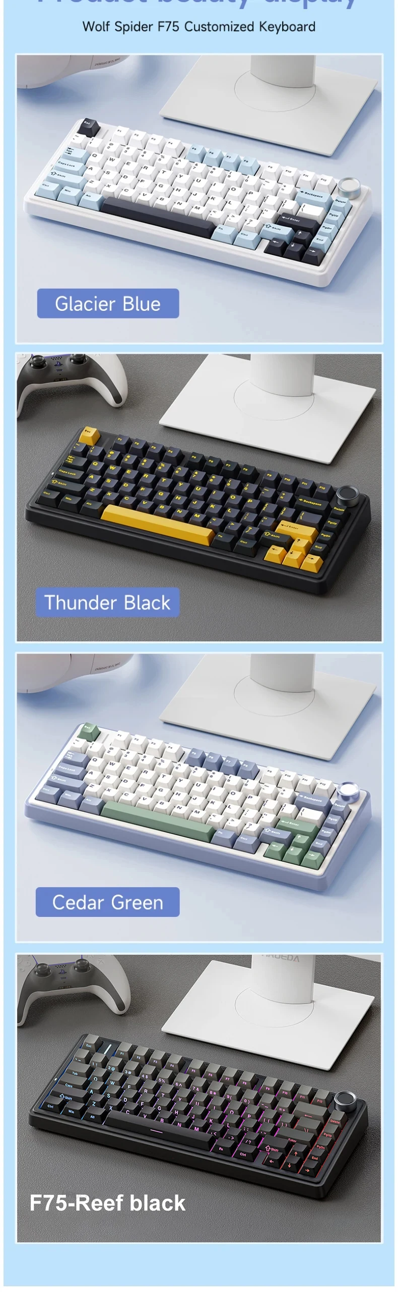 artículo valor Teclado de tamaño completo No Características Inalámbrico, Plug and Play, Teclas multimedia Estilo de operación Mecánico Interfaz de unidad USB 3.0 Molde privado Sí Estilo Mini, Estándar, Juegos, Multimedia, Moda Tipo Inalámbrico de 2,4 Ghz Tipo de interfaz usb, inalámbrico Teclado estándar 81 LLAVES Soporte para la muñeca NO Estado de los productos Nuevo Aplicación Escritorio Nombre de la marca AULA Número de modelo F75 Lugar de origen China Guangdong Marca del cuerpo del eje Kailh Teclado retroiluminado RGB Anti-ghosting LLAVES COMPLETAS Mecánico Sí Programable Sí