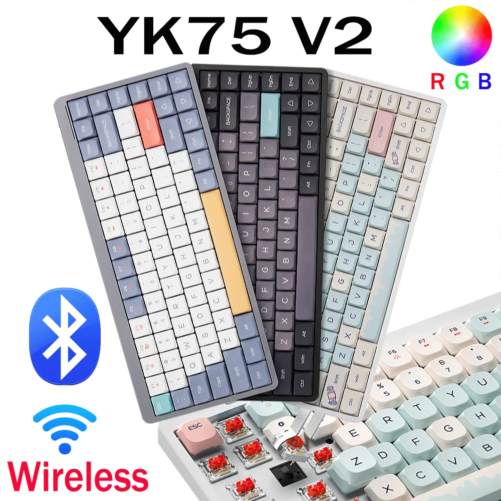 Comprar Teclado mecánico inalámbrico con Bluetooth, interruptor bajo RGB con dispositivo de iluminación, 2,4G, YK75 V2, para ordenador portátil, OUTEMU, Hot Swap