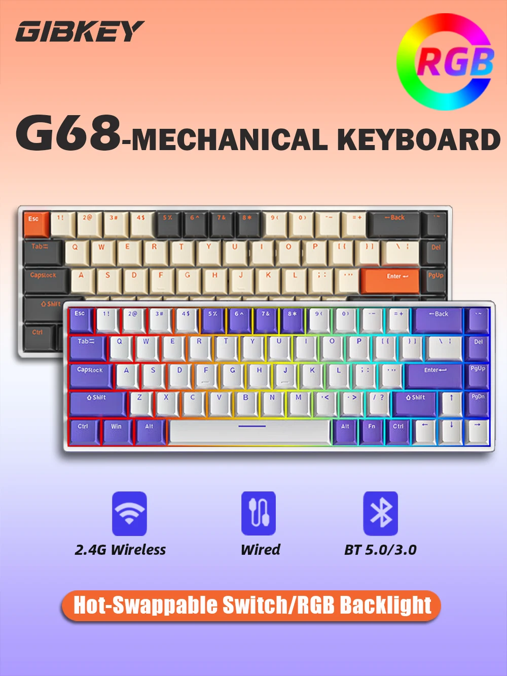 G68 Wireless Mechanical Keyboard Hot-Swappable Gaming Keyboard Bluetooth RGB Light Brown Red Switch for Gamer Tablet Computer