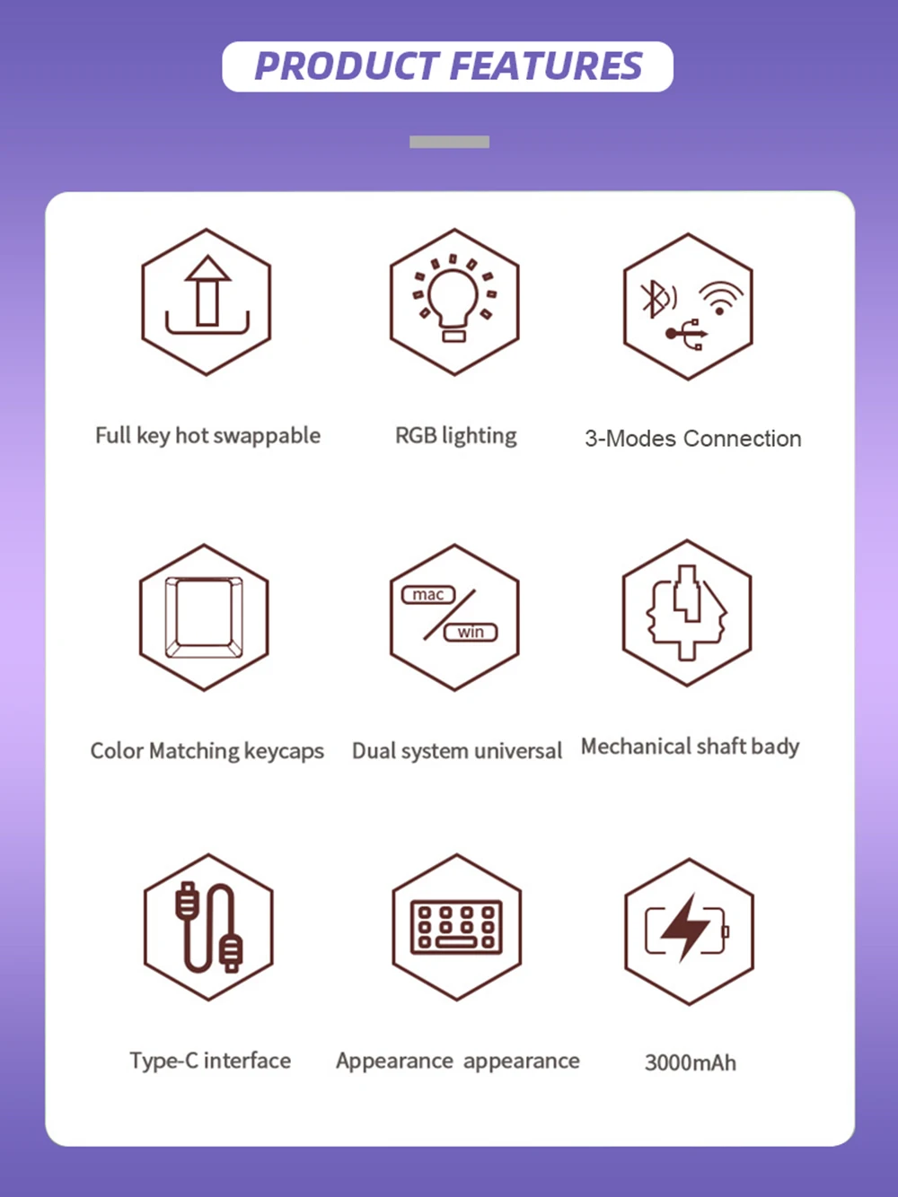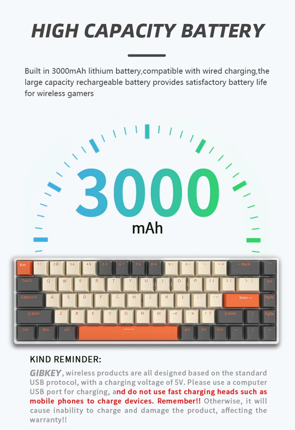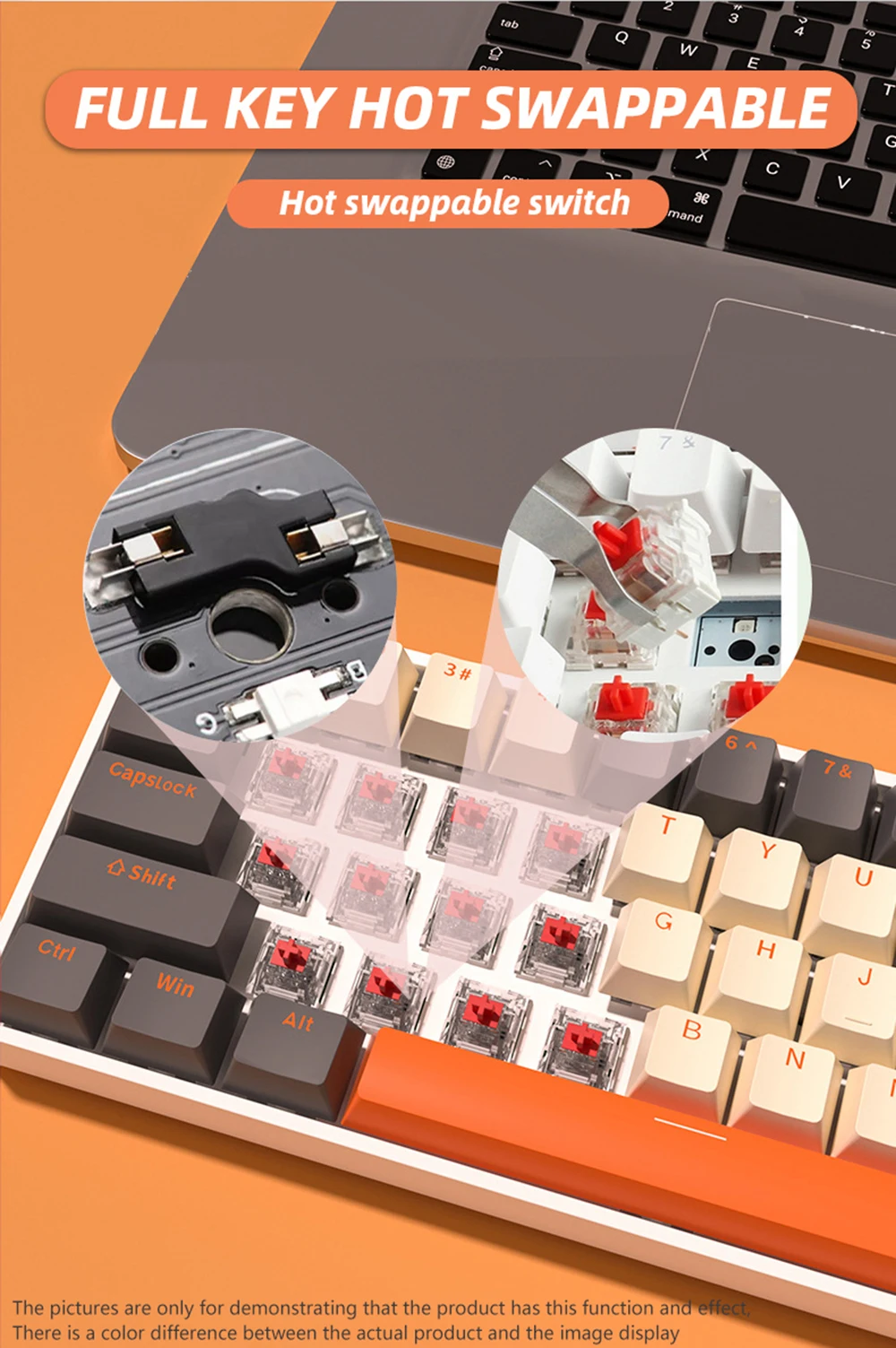• Hot-Swappable Mechanism :The G68 keyboard features a hot-swappable mechanism, allowing you to customize your typing experience by easily changing mechanical switches,offering flexibility and longevity to the product.