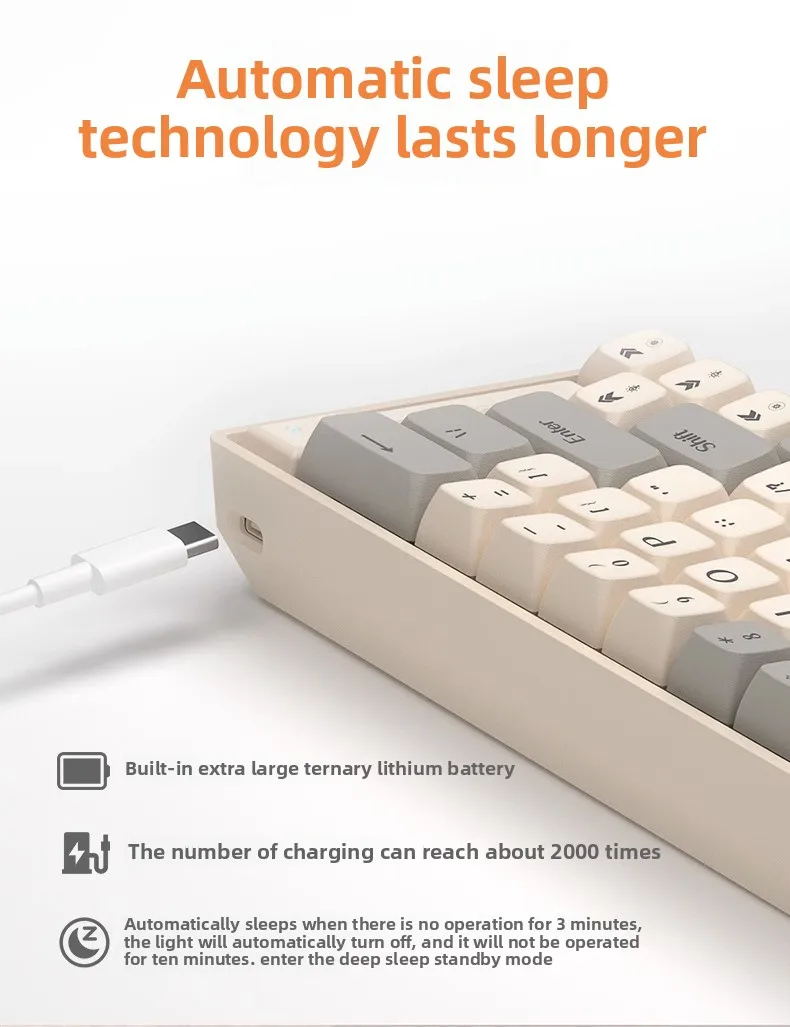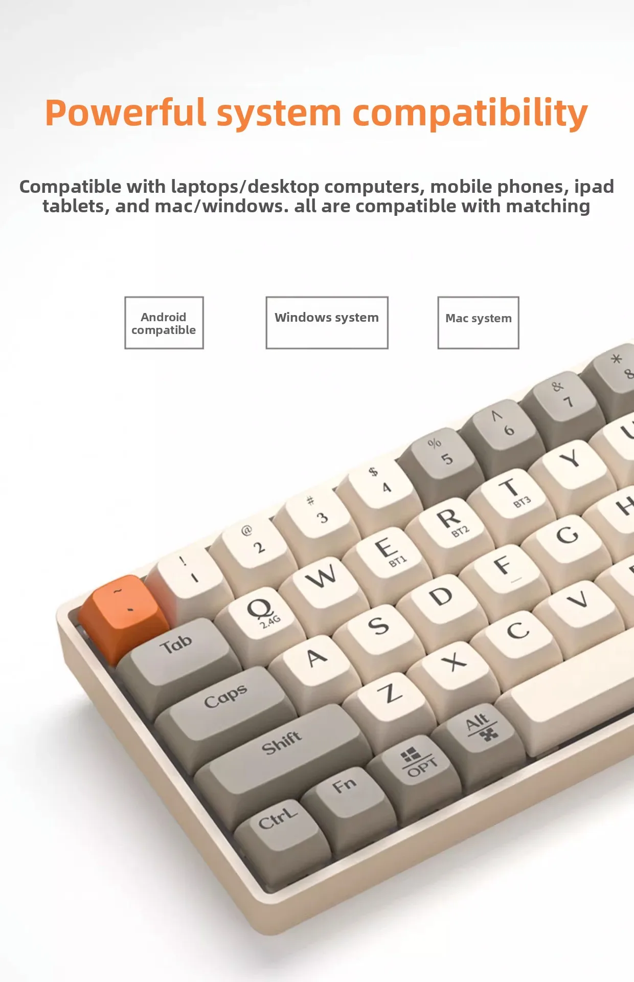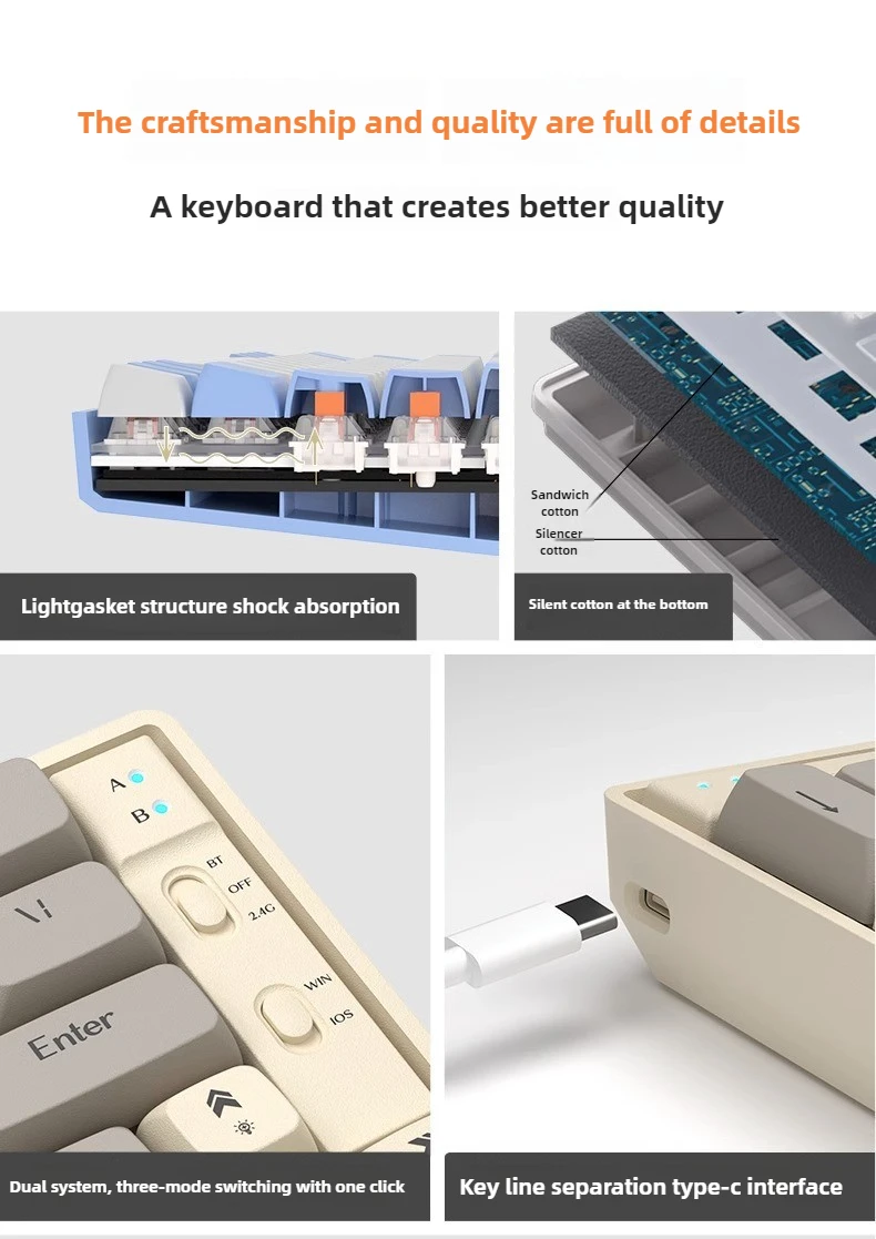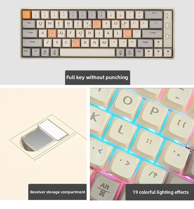 Langtu GK65 teclado mecánico inalámbrico de tres modos Bluetooth de 2,4 g, teclado de oficina competitivo para juegos personalizado con cable