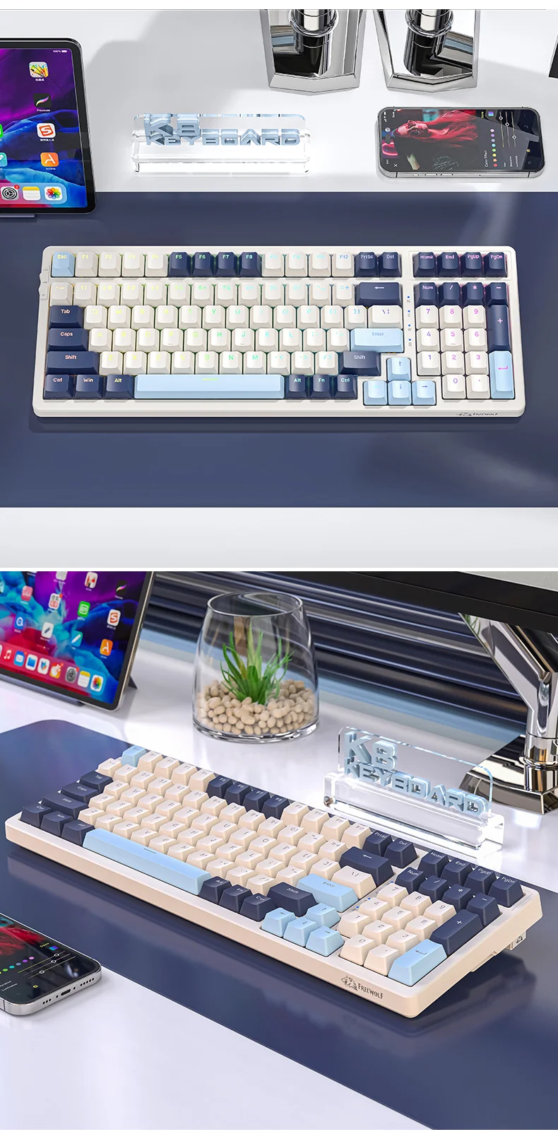 Teclado mecánico inalámbrico K8, conexión trimodo, 100 teclas, intercambio en caliente de teclas completas, efectos de iluminación, estructura de silenciador de juntas, portátiles