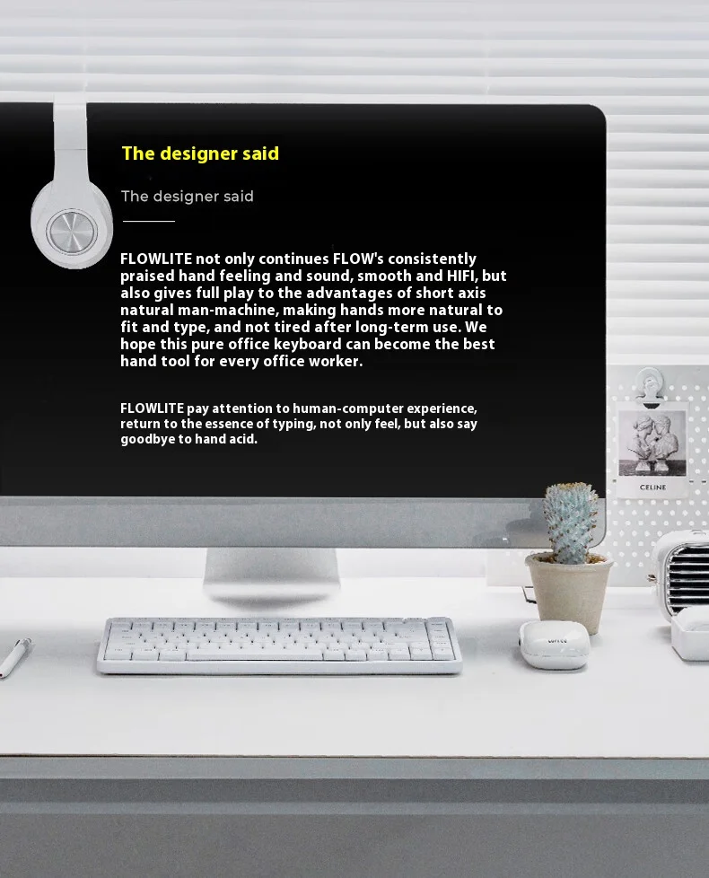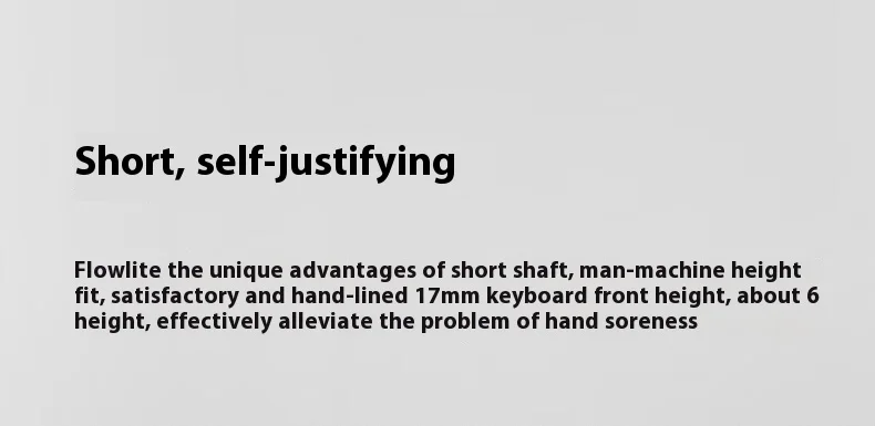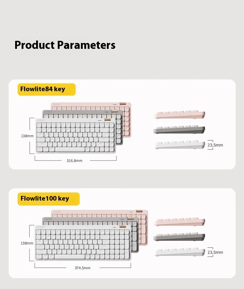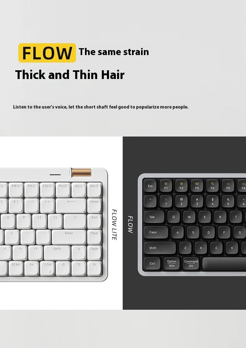 Diseñado para los minimalistas modernos, Flow Lite combina un diseño compacto de 100 teclas con un perfil ultradelgado (alto frontal de 17 mm) y una estructura liviana (658 g).Su estructura de bajo perfil y 6° La inclinación ergonómica elimina la tensión en la muñeca, perfecta para productividad durante todo el día o maratones de juegos16.