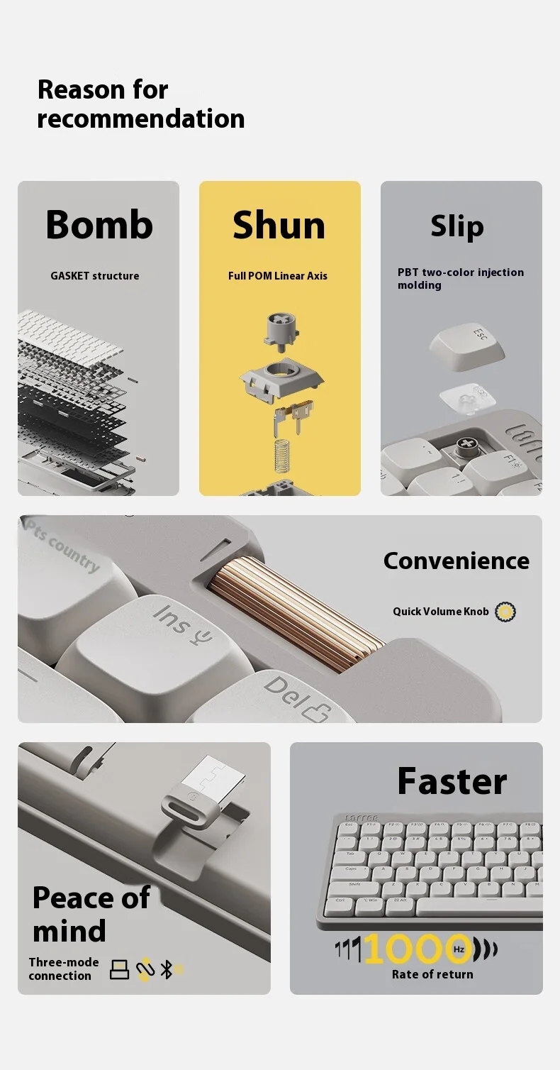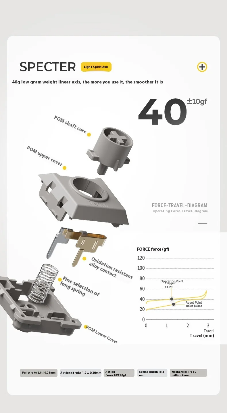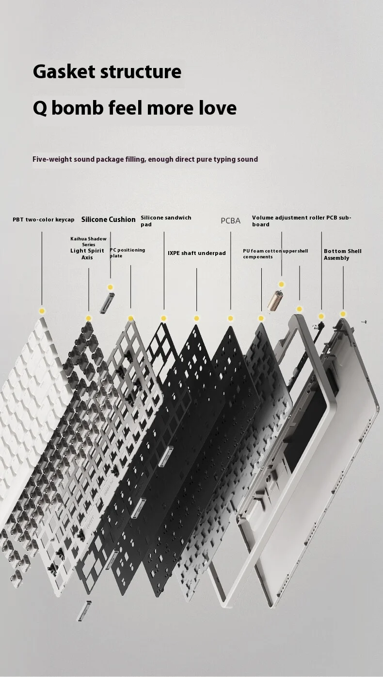 Con Kailh Specter Light-Switch lineal(activación de 40 g, viaje de 1,2 mm), este teclado ofrece pulsaciones de teclas suaves como la mantequilla con un funcionamiento silencioso.La estructura montada en la junta y la espuma amortiguadora de sonido de 5 capas reducen el encogimiento, creando una acústica refinada "similar al mármol" perfecta para oficinas o espacios compartidos 356.