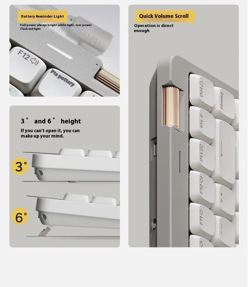 Comprar Teclado mecánico inalámbrico LOFREE, teclado compacto de perfil bajo de 100 teclas, junta intercambiable en caliente de tres modos, teclas PBT, diseño blanco