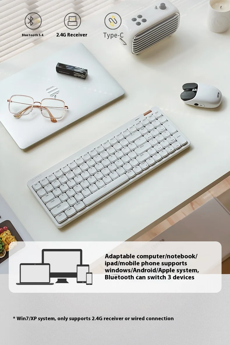 Cambie sin problemas entre los modos Bluetooth 5.4, inalámbrico de 2,4 GHz y cableado USB-C.Compatible con Windows, macOS, iOS y Android, se empareja sin esfuerzo con hasta tres dispositivos, ideal para postes de trabajo de malabarismo multitarea y dispositivos móviles24.