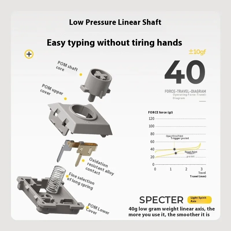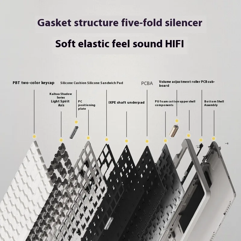 Con Kailh Specter Light-Switch lineal(activación de 40 g, viaje de 1,2 mm), este teclado ofrece pulsaciones de teclas suaves como la mantequilla con un funcionamiento silencioso.La estructura montada en la junta y la espuma amortiguadora de sonido de 5 capas reducen el encogimiento, creando una acústica refinada "similar al mármol" perfecta para oficinas o espacios compartidos 356.