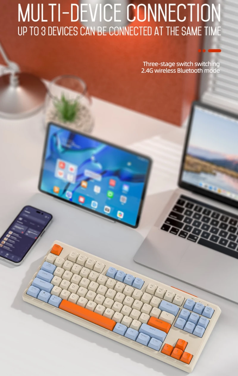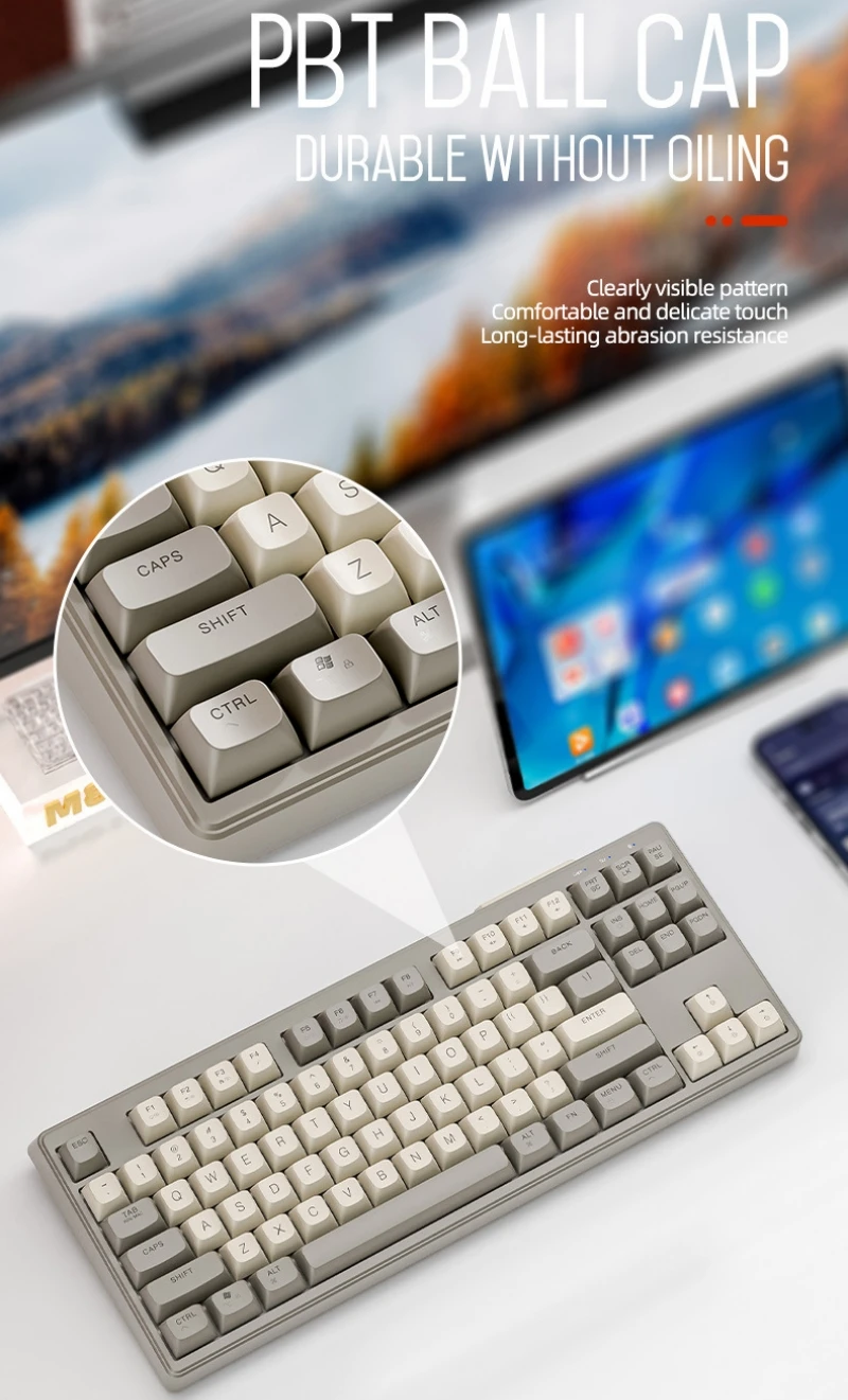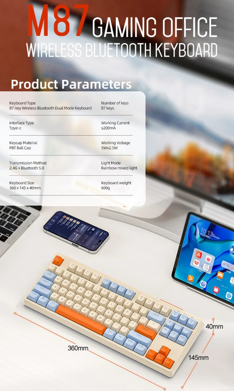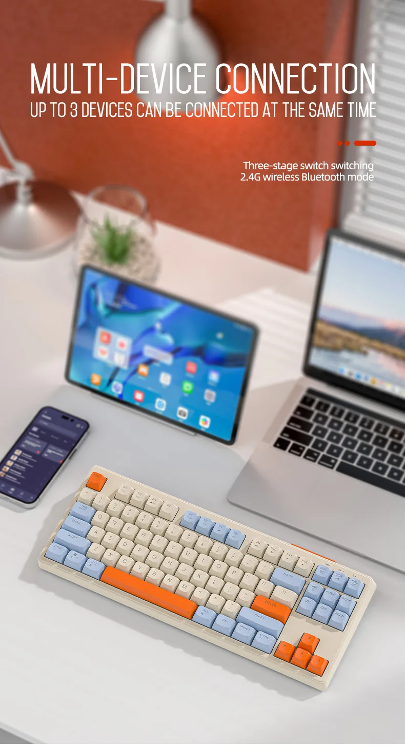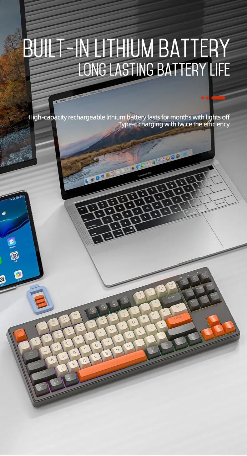 Teclado mecánico inalámbrico modos duales BT 5,0 2,4 Ghz intercambiable en caliente teclado de 87 teclas luz RGB retroiluminada tipo C batería grande M87