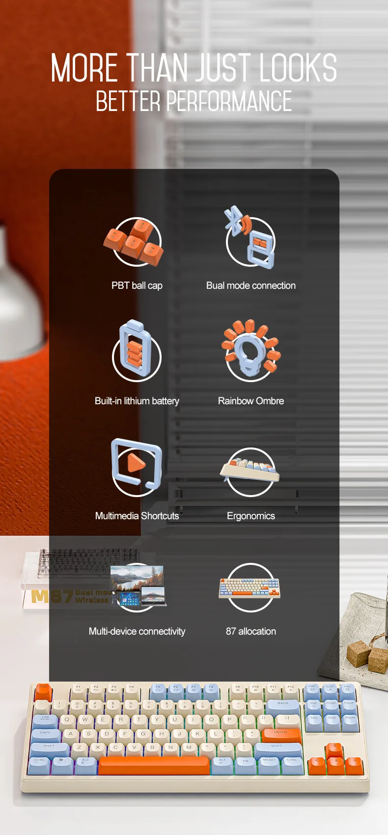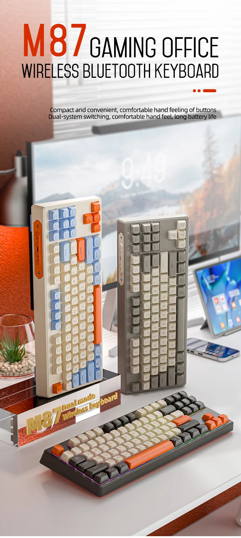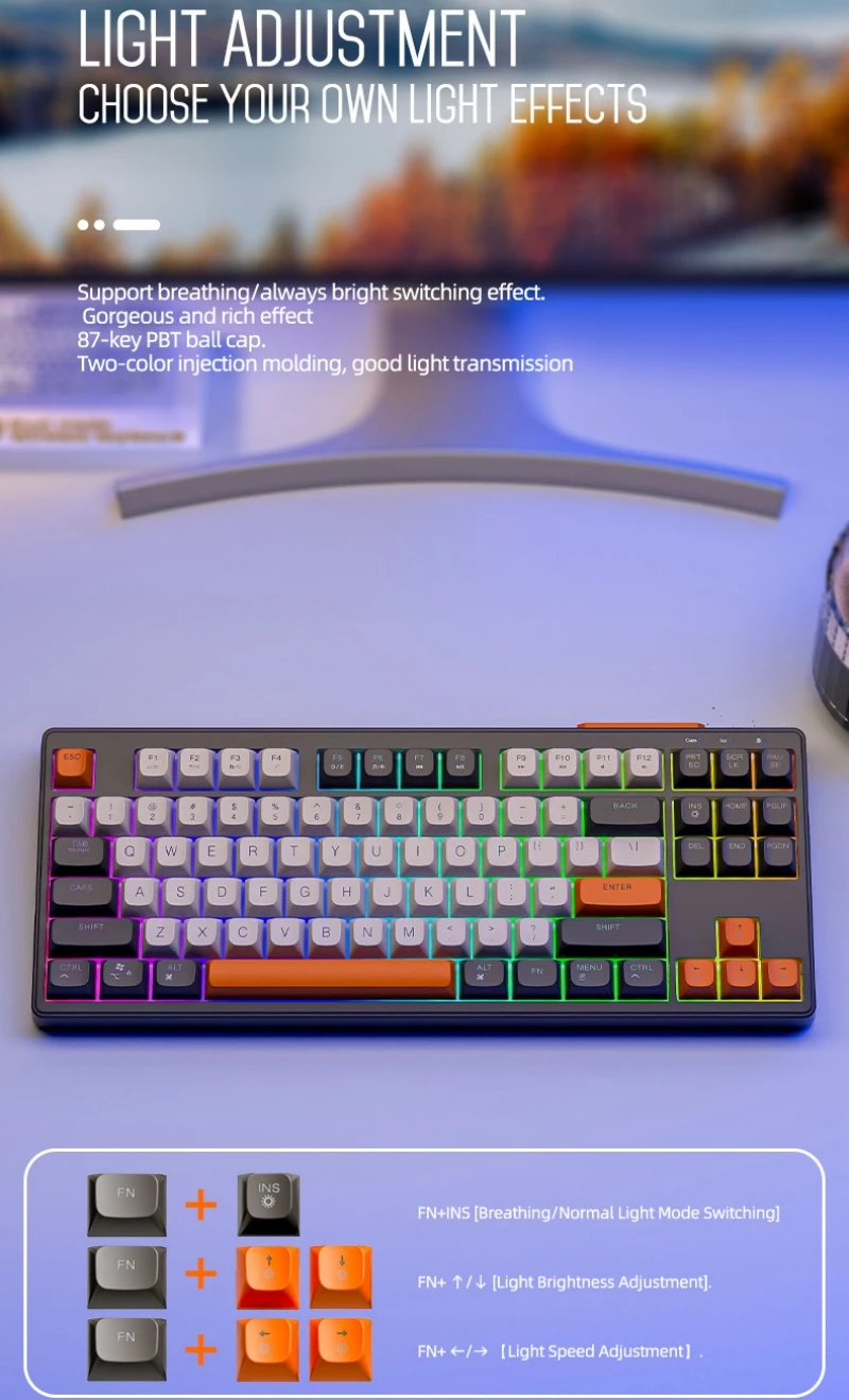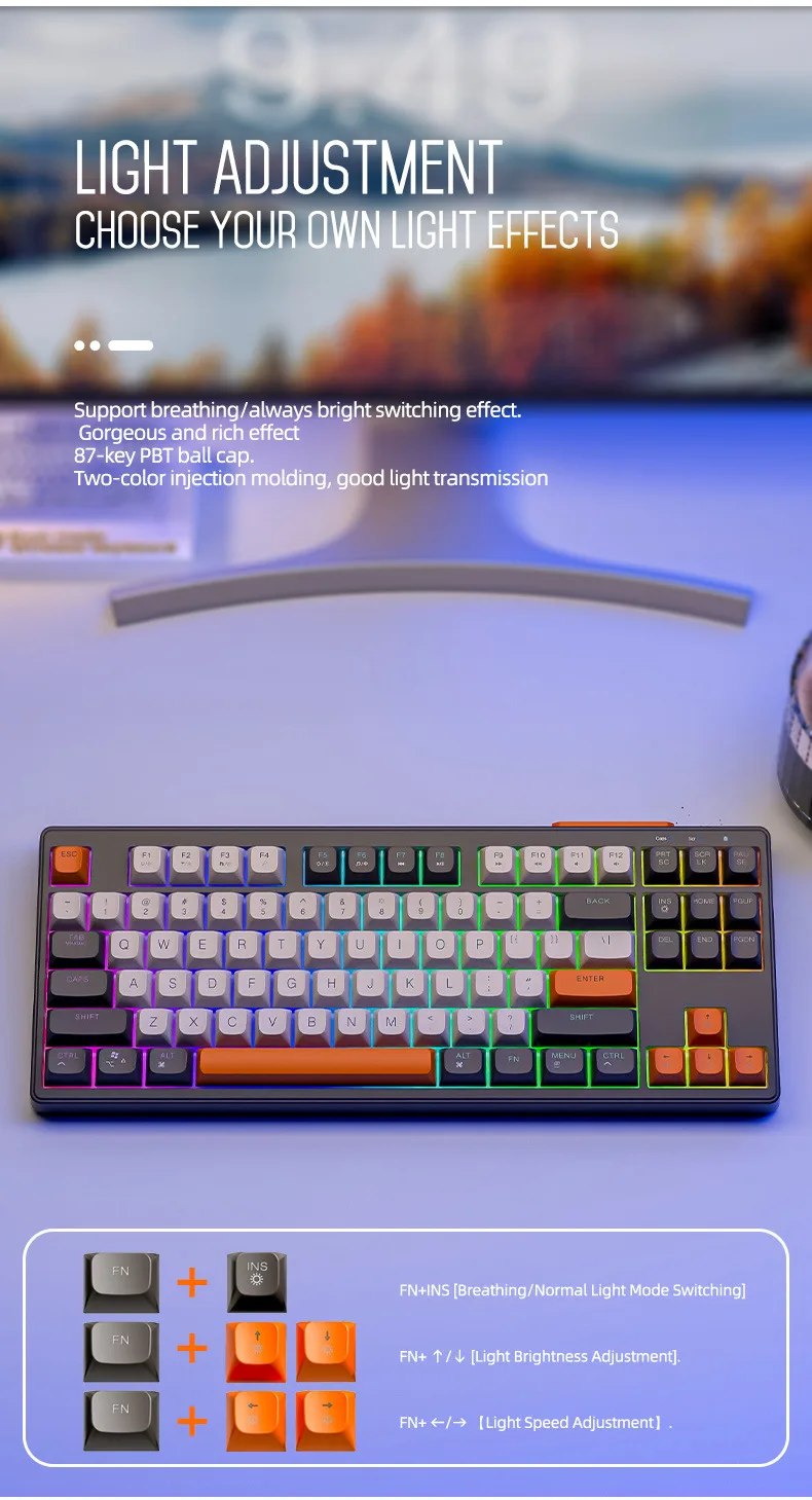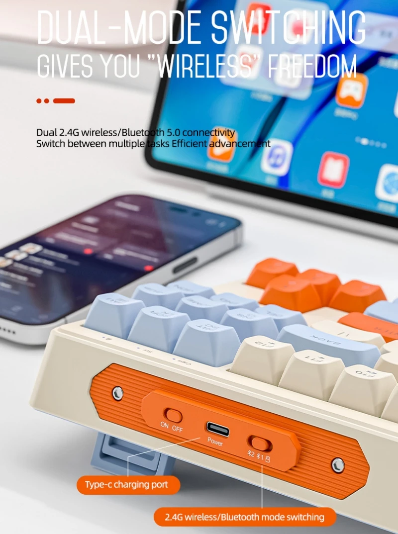 Teclado mecánico inalámbrico modos duales BT 5,0 2,4 Ghz intercambiable en caliente teclado de 87 teclas luz RGB retroiluminada tipo C batería grande M87