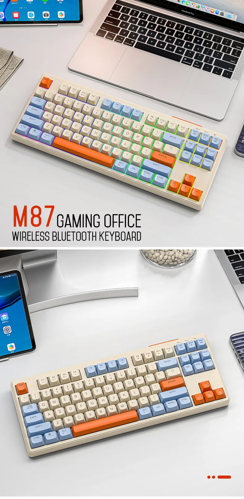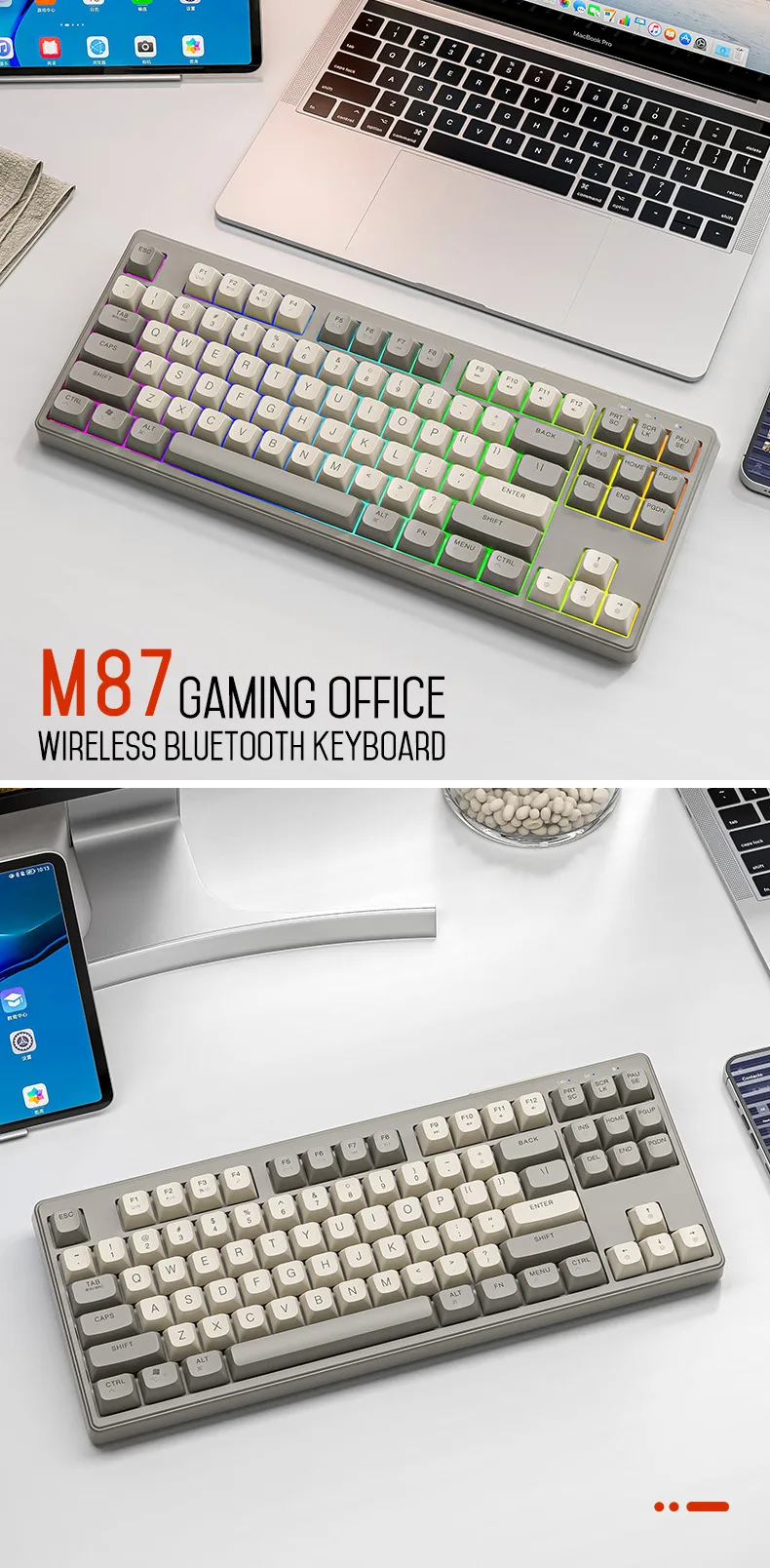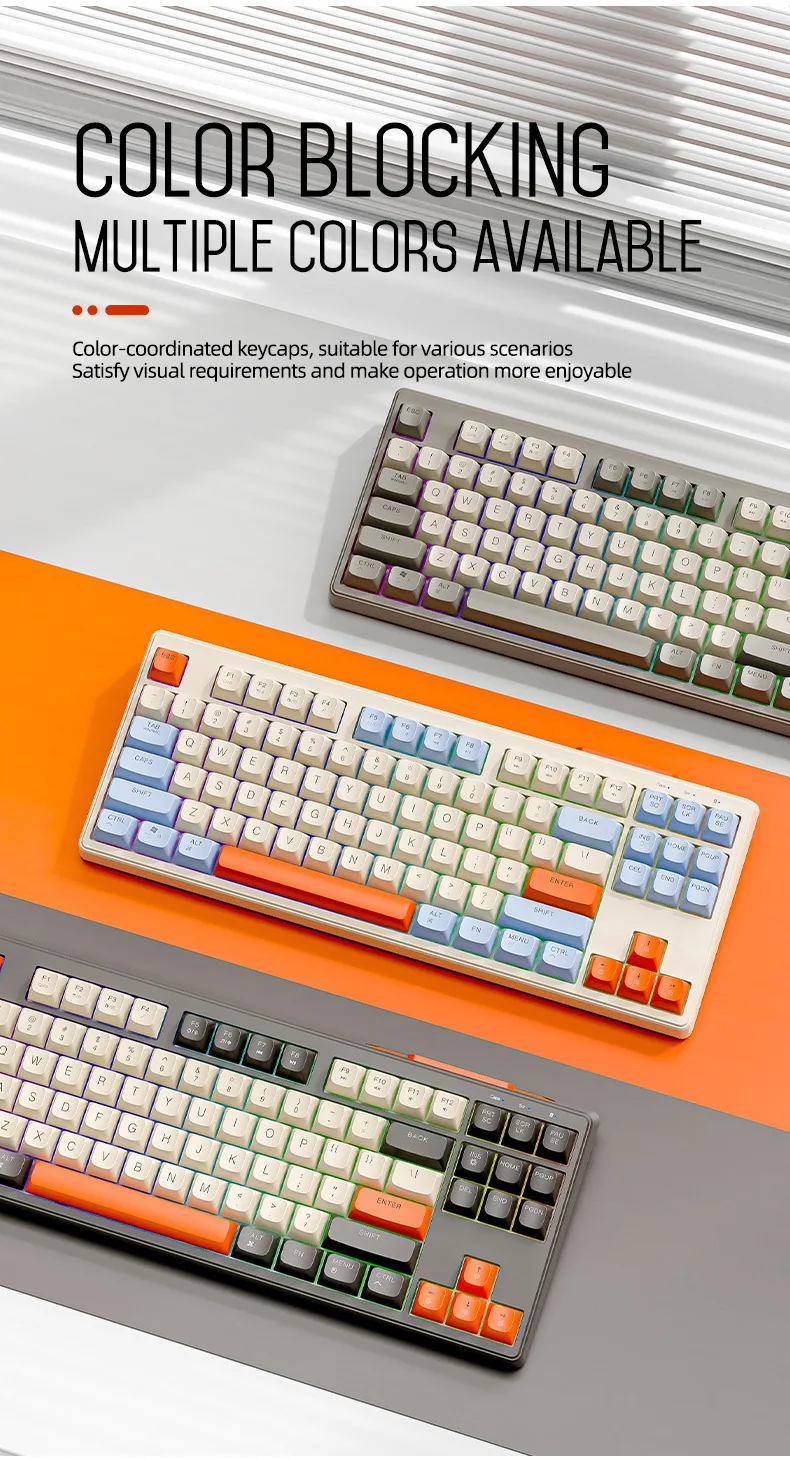 Comprar Teclado mecánico inalámbrico modos duales BT 5,0 2,4 Ghz intercambiable en caliente teclado de 87 teclas luz RGB retroiluminada tipo C batería grande M87