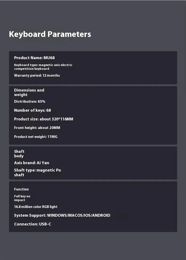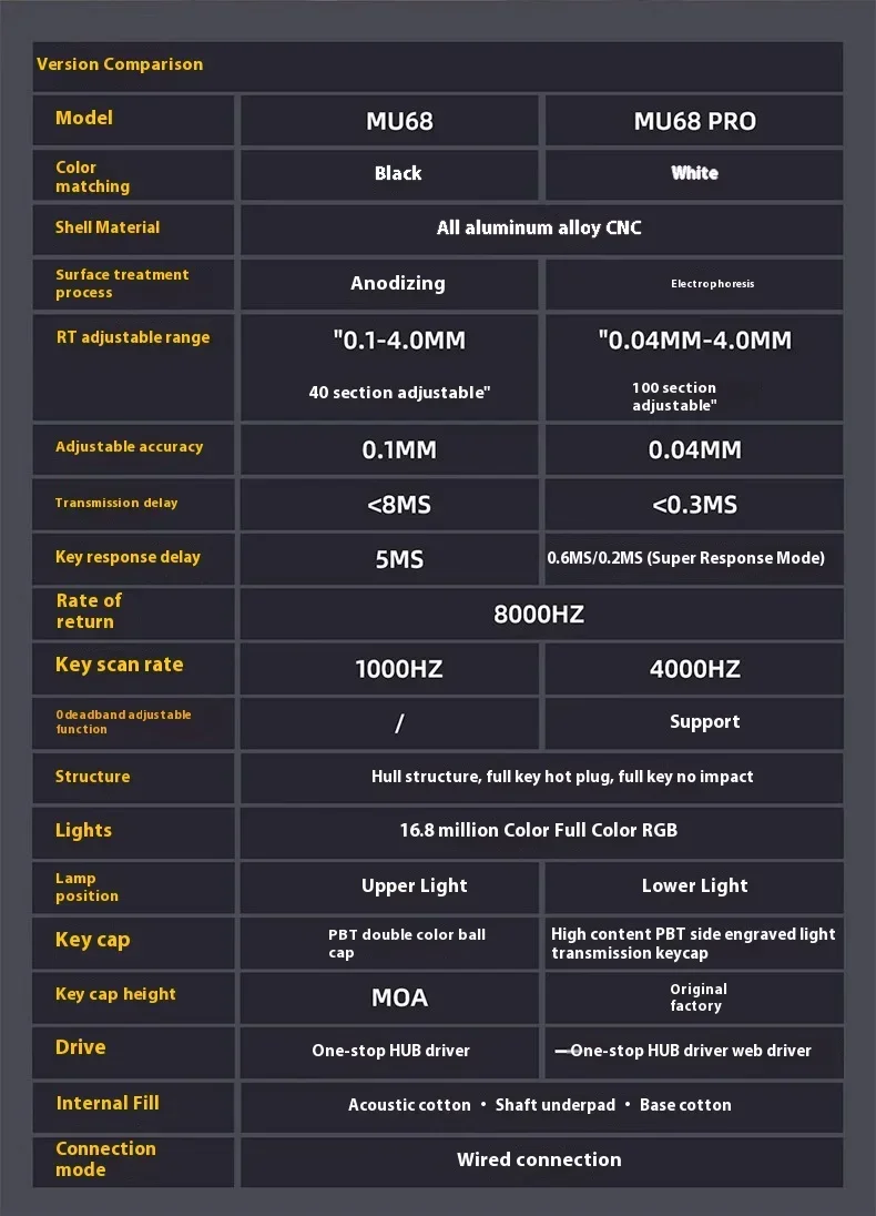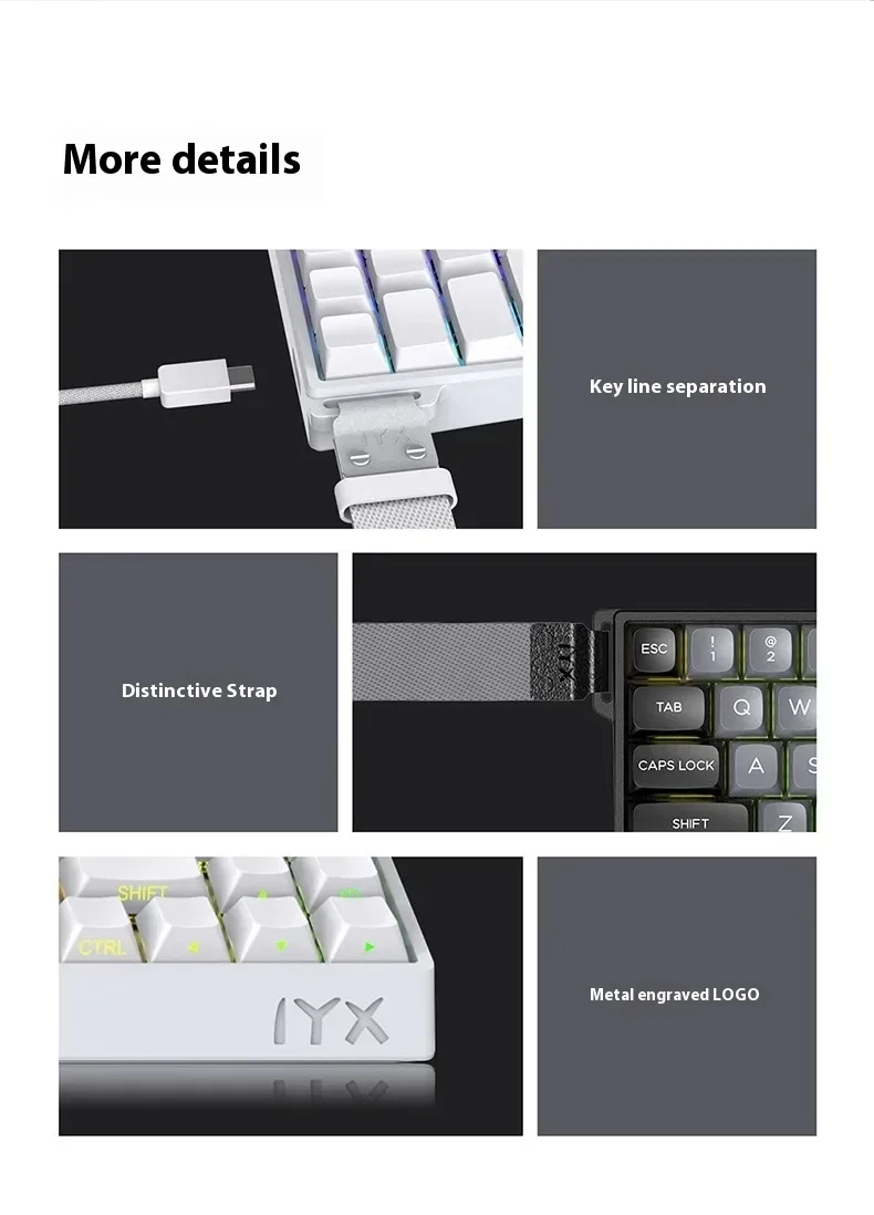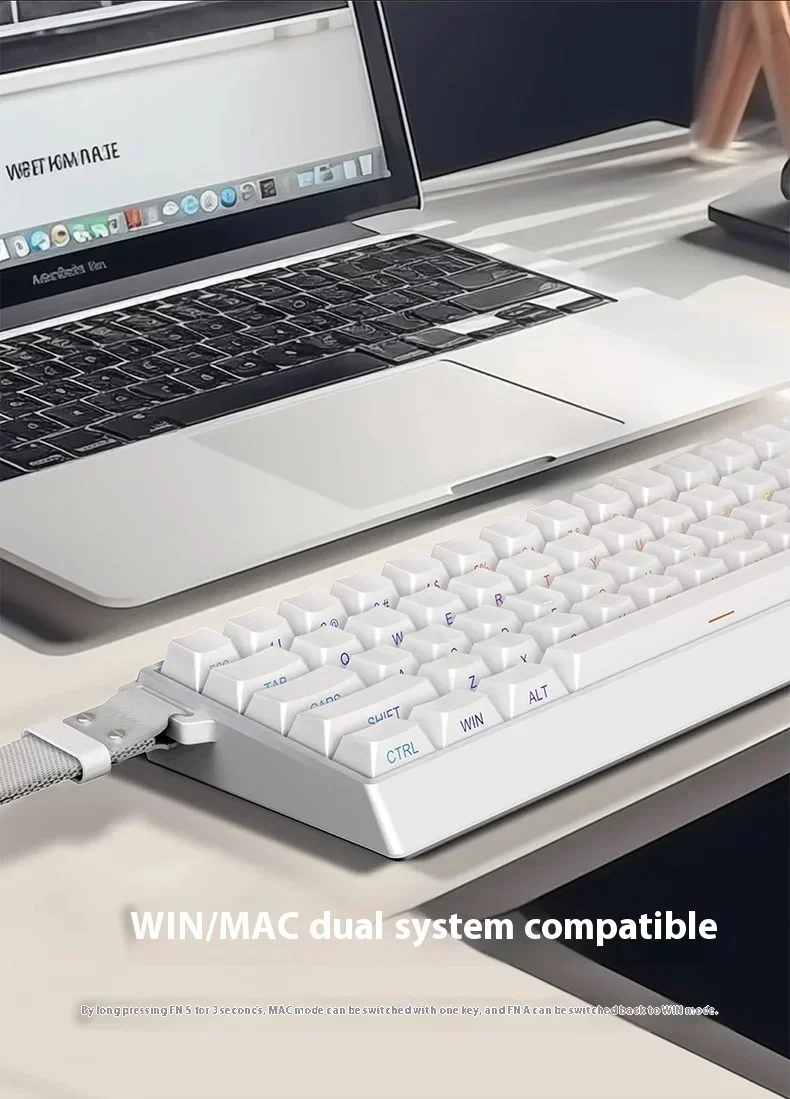5. Compatibilidad con múltiples sistemas y diseño conveniente: admite sistemas duales WIN/MAC, conmutación perfecta sin problemas de compatibilidad; Configuración optimizada de 68 teclas, que incluye teclas direccionales independientes, diseño compacto de grado esports, fácil de transportar, adecuado tanto para oficina como para juegos.