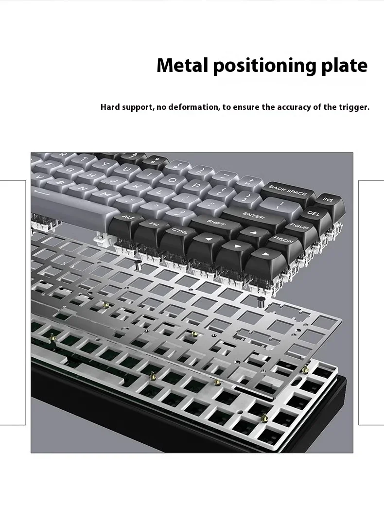 2.Materiales y artesanía de alta gama: cuerpo de aluminio tallado CNC, resistente, duradero y lleno de textura;Las teclas PBT son resistentes al aceite y al desgaste, se combinan con placas de posicionamiento metálicas para brindar una experiencia de roscado estable y sólida, y su calidad puede resistir la prueba del tiempo.