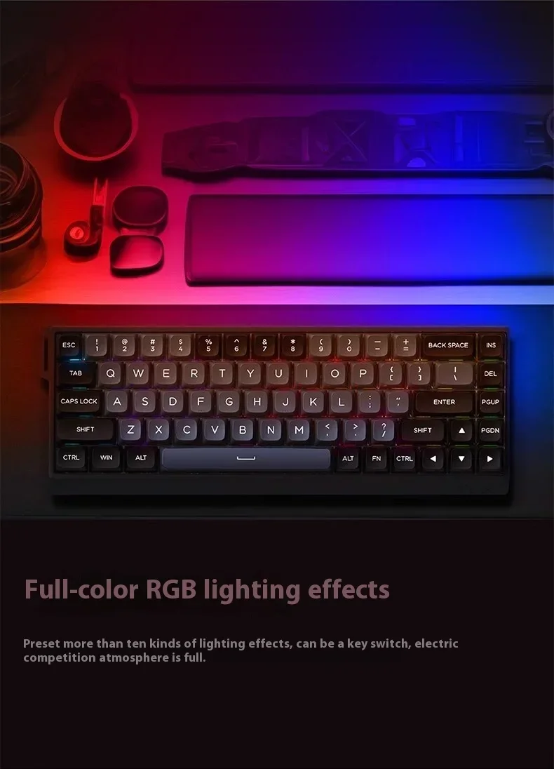 3.Experiencia personalizada: diseño de llave completa intercambiable en caliente, conveniente para que los usuarios reemplacen libremente el cuerpo del eje, fácilmente adaptable a diferentes escenarios de juego y oficina;Personalice los efectos de iluminación RGB, cambie libremente millones de colores y cree una atmósfera exclusiva.