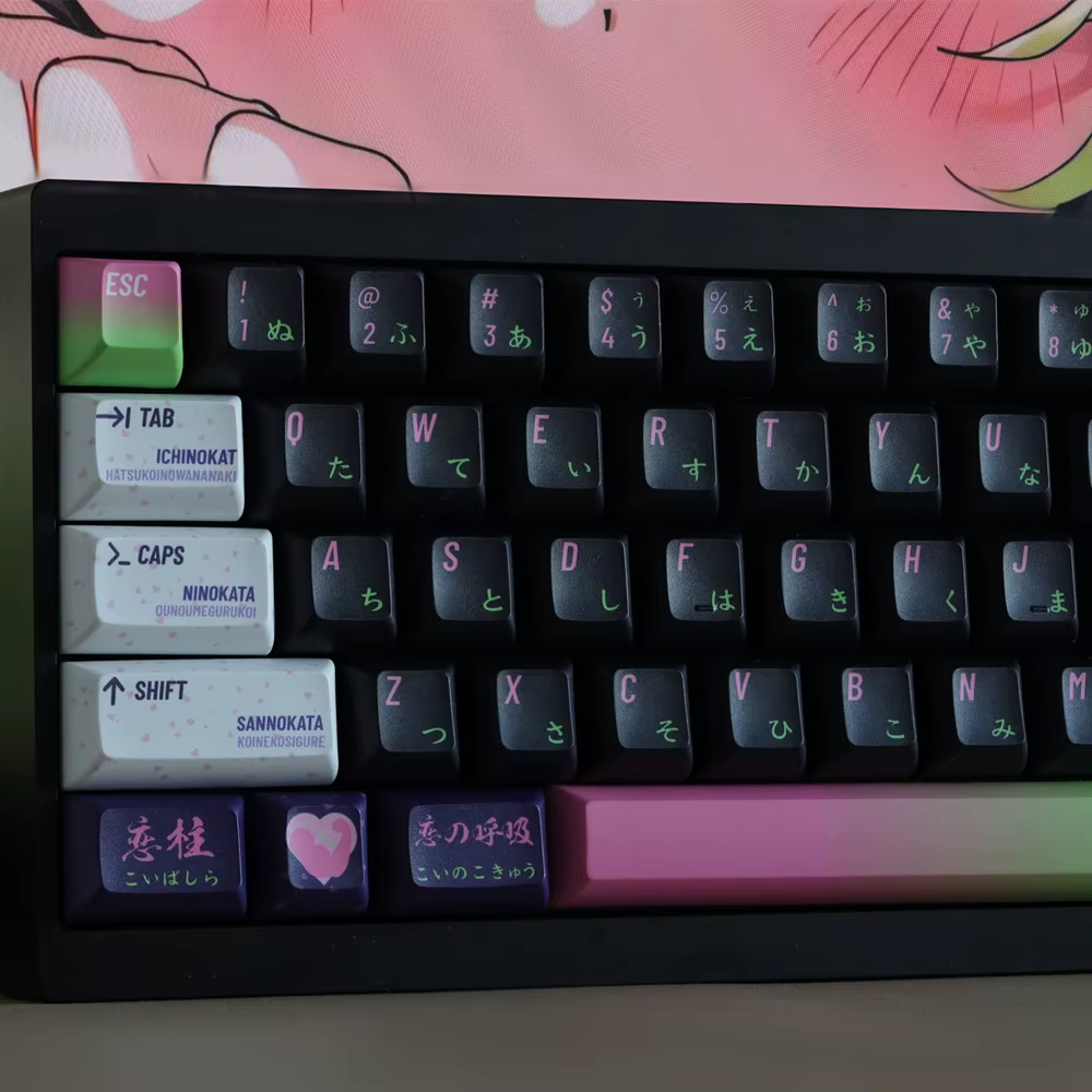 140 teclas Love Column Keycap KCA Profile DYE sublimación japonés PBT Anime Sets para GH60 61/64/68 RK84 Teclado mecánico