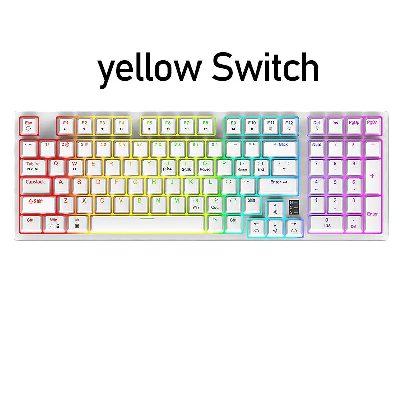 5. Interruptor Amarillo/plateado: El interruptor del teclado está disponible en variantes amarilla y plateada que proporcionan una buena fiabilidad y rendimiento.
