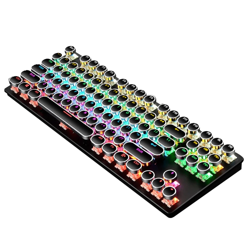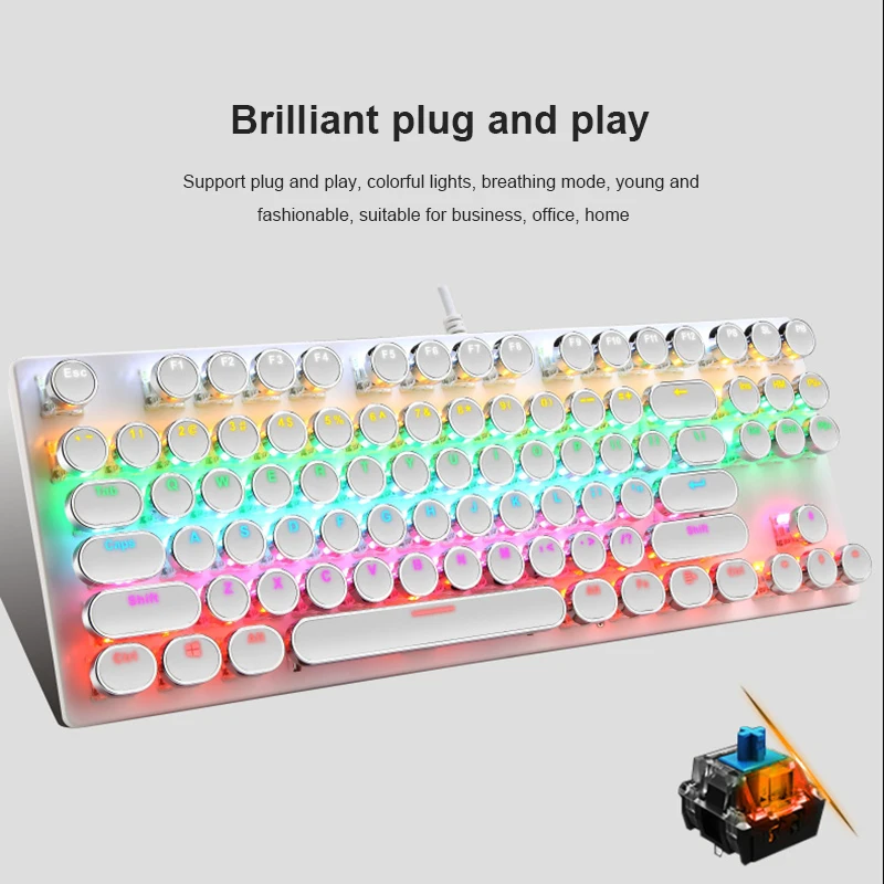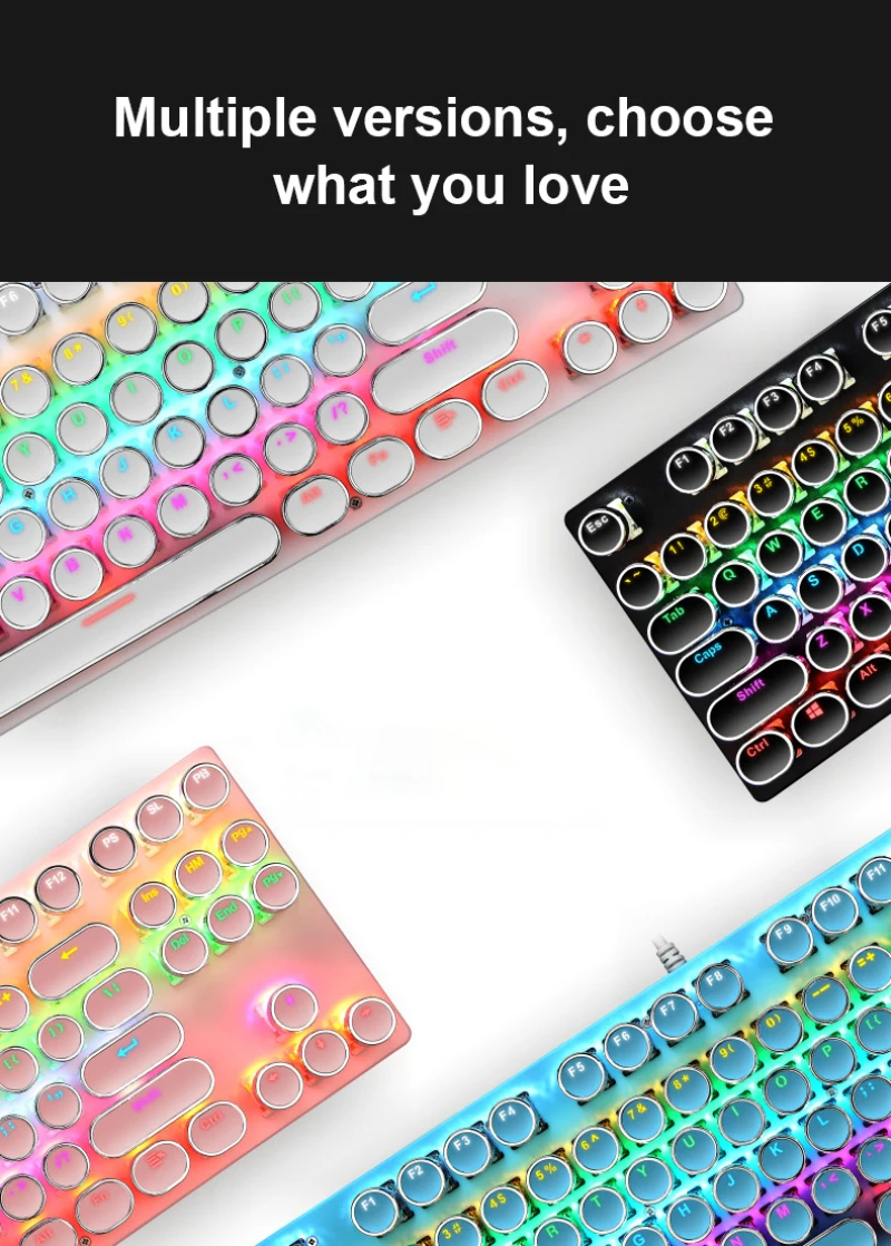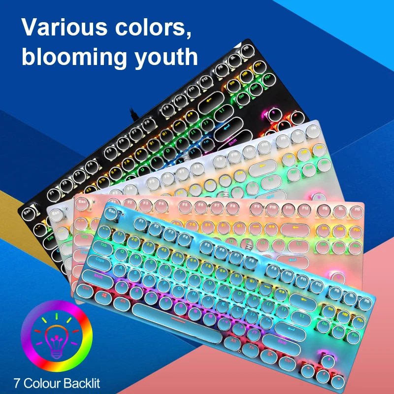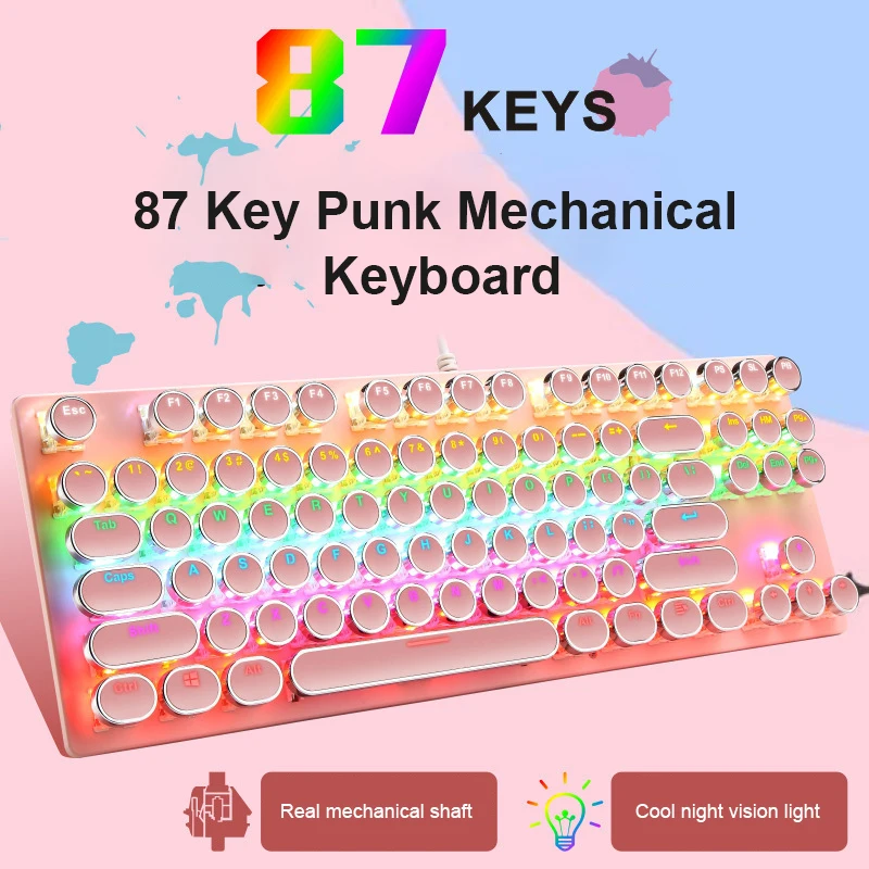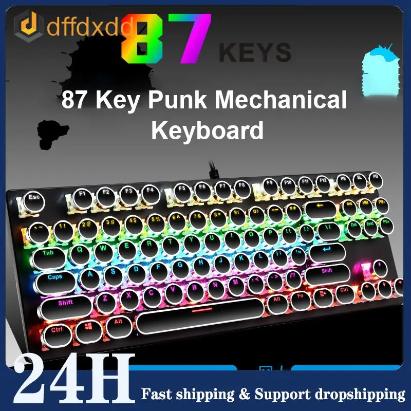 Comprar Teclado mecánico para juegos Retro Punk USB con cable LED, interruptor retroiluminado RGB de 23 modos, 104 teclas, teclado completo, eje verde para juegos de ordenador