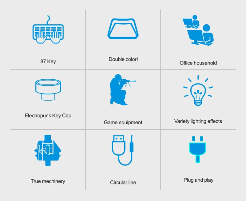 Diseño estándar de 87 teclas, teclas punk galvanizadas, con una estructura gruesa lateral estrecha, cuerpo de eje verde mecánico real, colores de moda con luces frescas, hermoso y encantador
