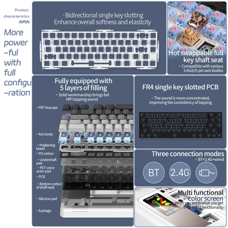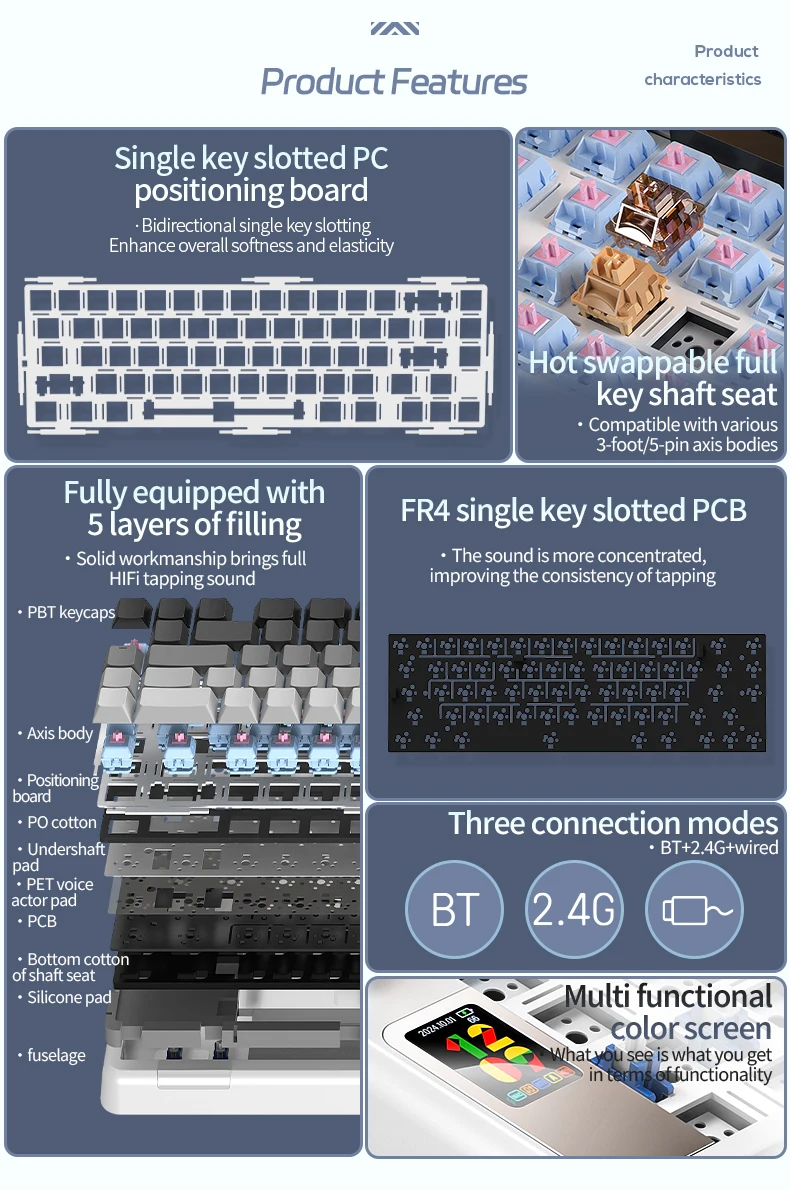 Comprar Teclado mecánico para juegos, modo triple, pantalla multibotón personalizada, teclado inalámbrico RGB Esports con pantalla inteligente TFT