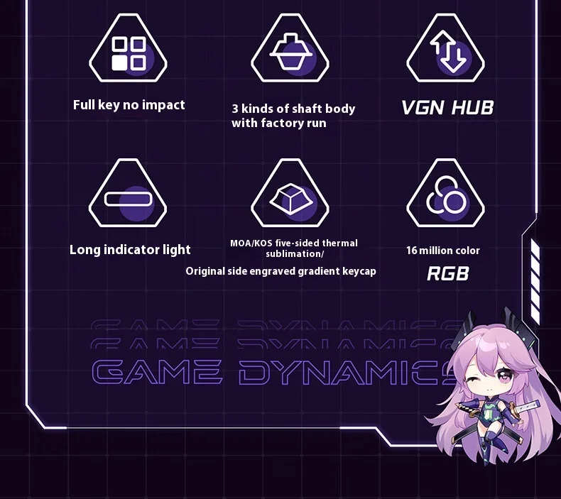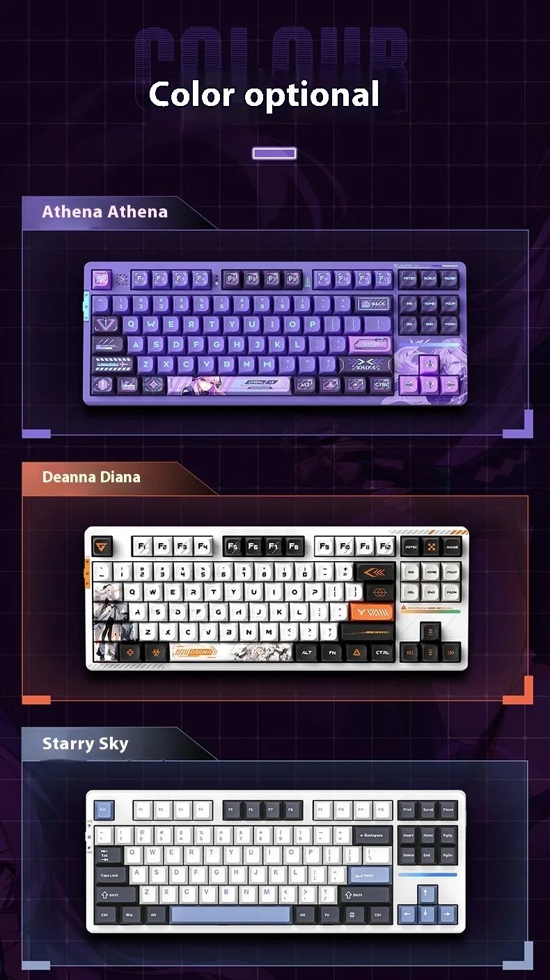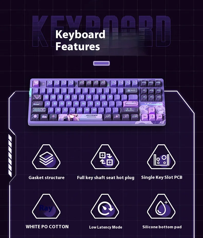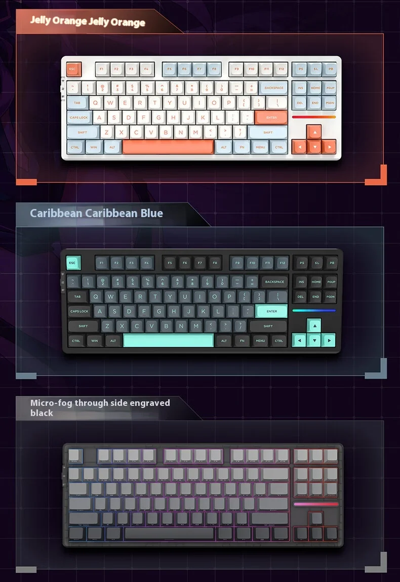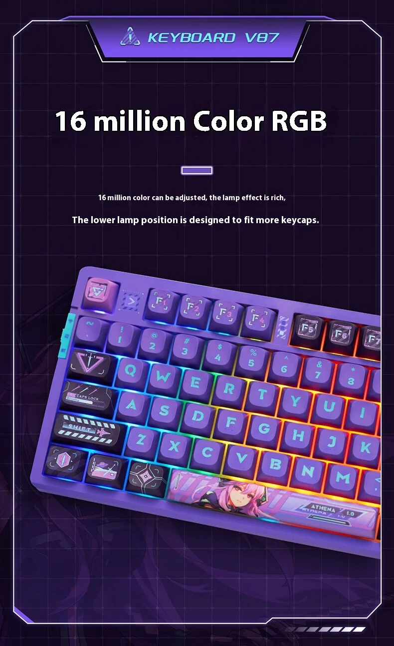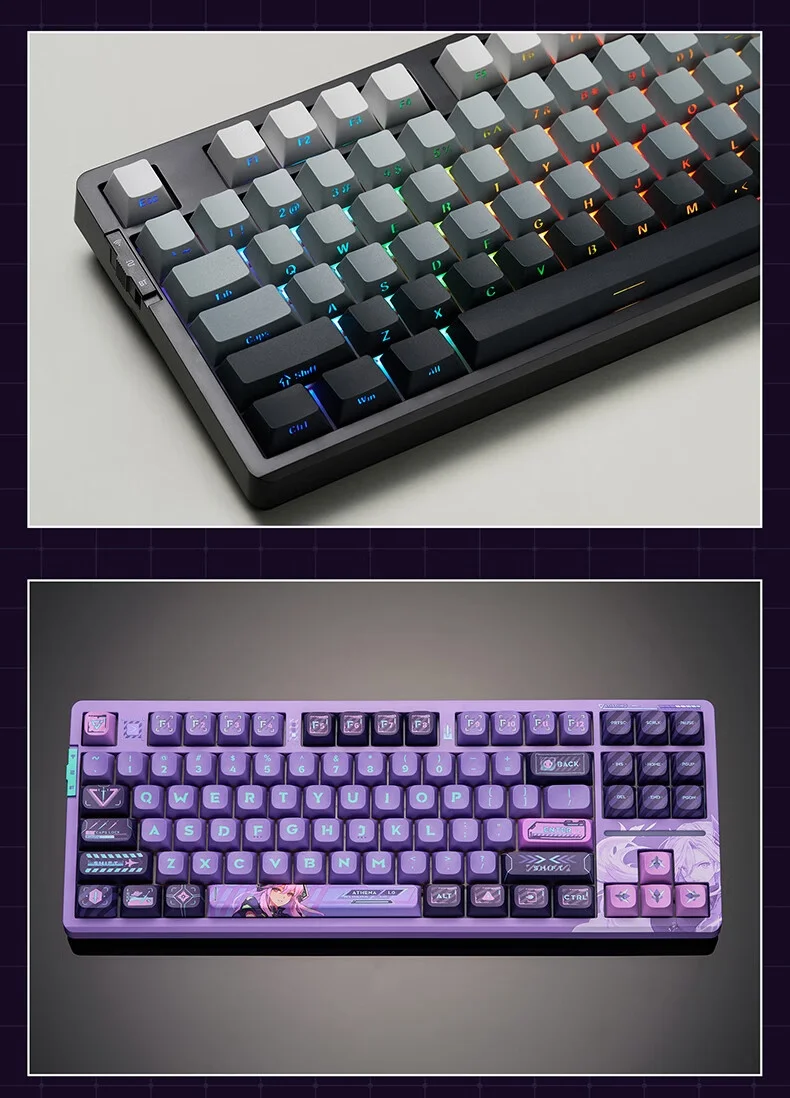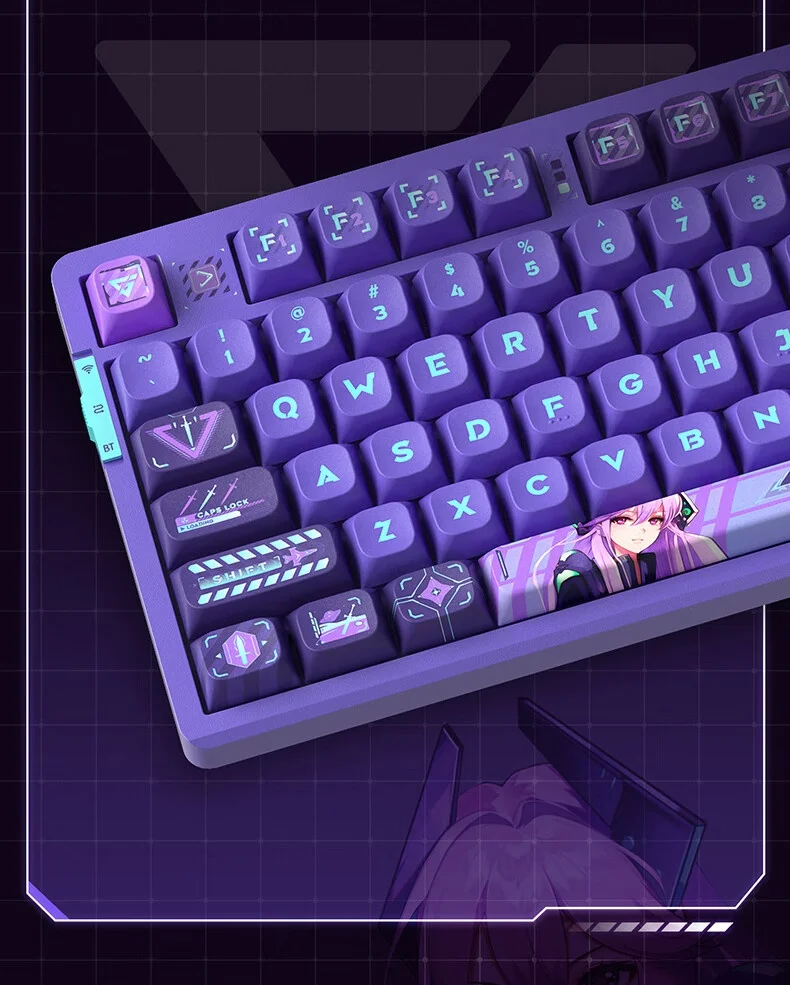 Las teclas PBT texturizadas en un gradiente de estrella de campo resisten el brillo y las huellas dactilares durante las sesiones de codificación de maratón, mientras que la retroiluminación RGB orientada al sur proyecta un brillo etéreo a través de leyendas grabadas lateralmente, personalizable mediante software para sincronización de juegos pulsante o tonos estáticos minimalistas14.
