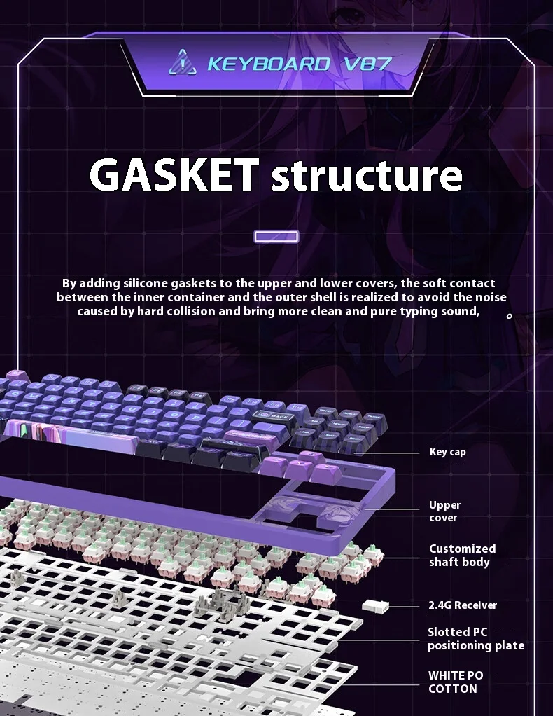 Comprar Teclado mecánico para juegos VGN V87, 87 teclas, modo Triple, inalámbrico, Bluetooth, eje de pudín de fresa, estructura de junta intercambiable en caliente
