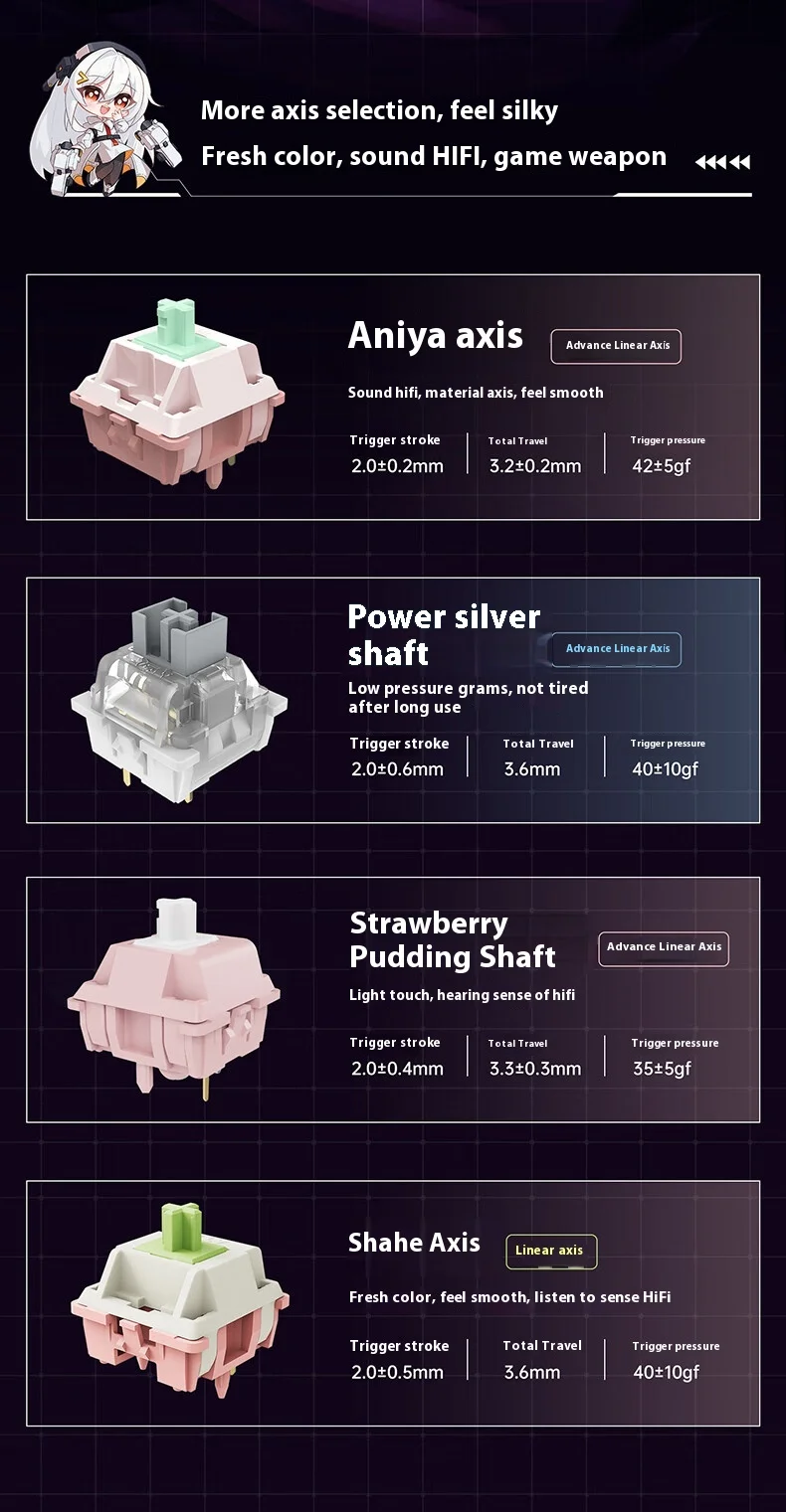 Los enchufes universales de intercambio en caliente permiten actualizaciones instantáneas体: cambie entre la retroalimentación táctil "escritora y negra" para escribir sprints o acción lineal mantecosa para un juego competitivo3.Los 6° El diseño ergonómico de la inclinación y la tecla cóncava minimizan la tensión de la muñeca durante las maratones creativas de 10 horas3.