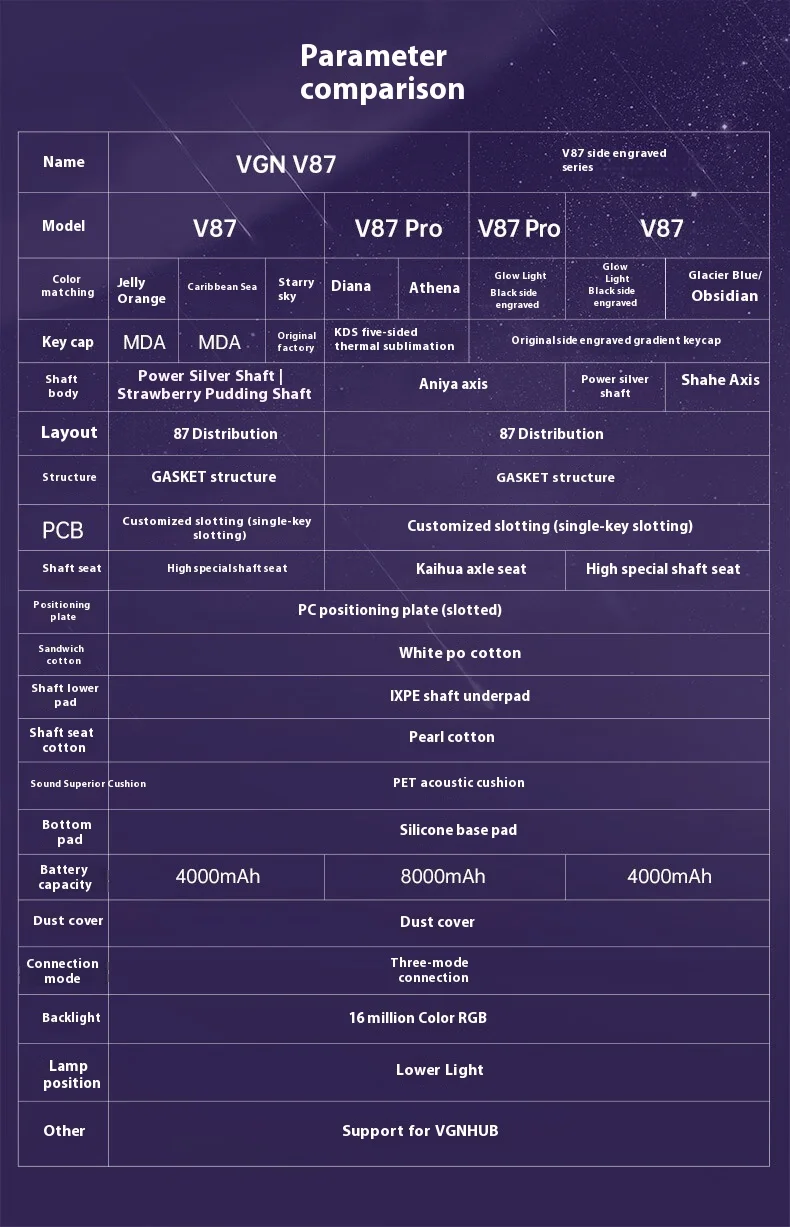 Teclado mecánico de tres modos VGN V87 – Galaxy Nebula Edition con interruptores de velocidad plateados