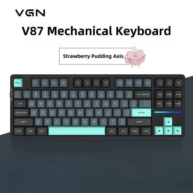 Comprar Teclado mecánico para juegos VGN V87, 87 teclas, modo Triple, inalámbrico, Bluetooth, eje de pudín de fresa, estructura de junta intercambiable en caliente