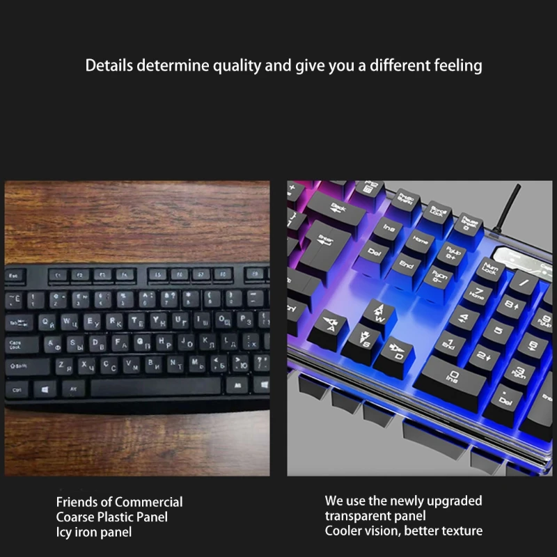 El diseño del teclado es ergonómico, profesional con teclas completas anti-ghosting, es muy adecuado para escribir cómodamente y ayuda a reducir la fatiga de la mano durante los Juegos a largo plazo.