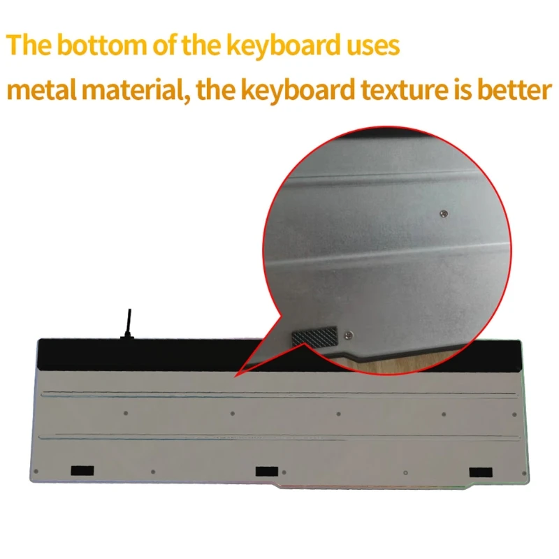 Este teclado está hecho de aleación de aluminio de alta calidad-partículas ABS, antideslizantes, los caracteres son resistentes al desgaste y no se desvanecen fácilmente, la textura de las teclas es buena y no deja huellas dactilares. br/