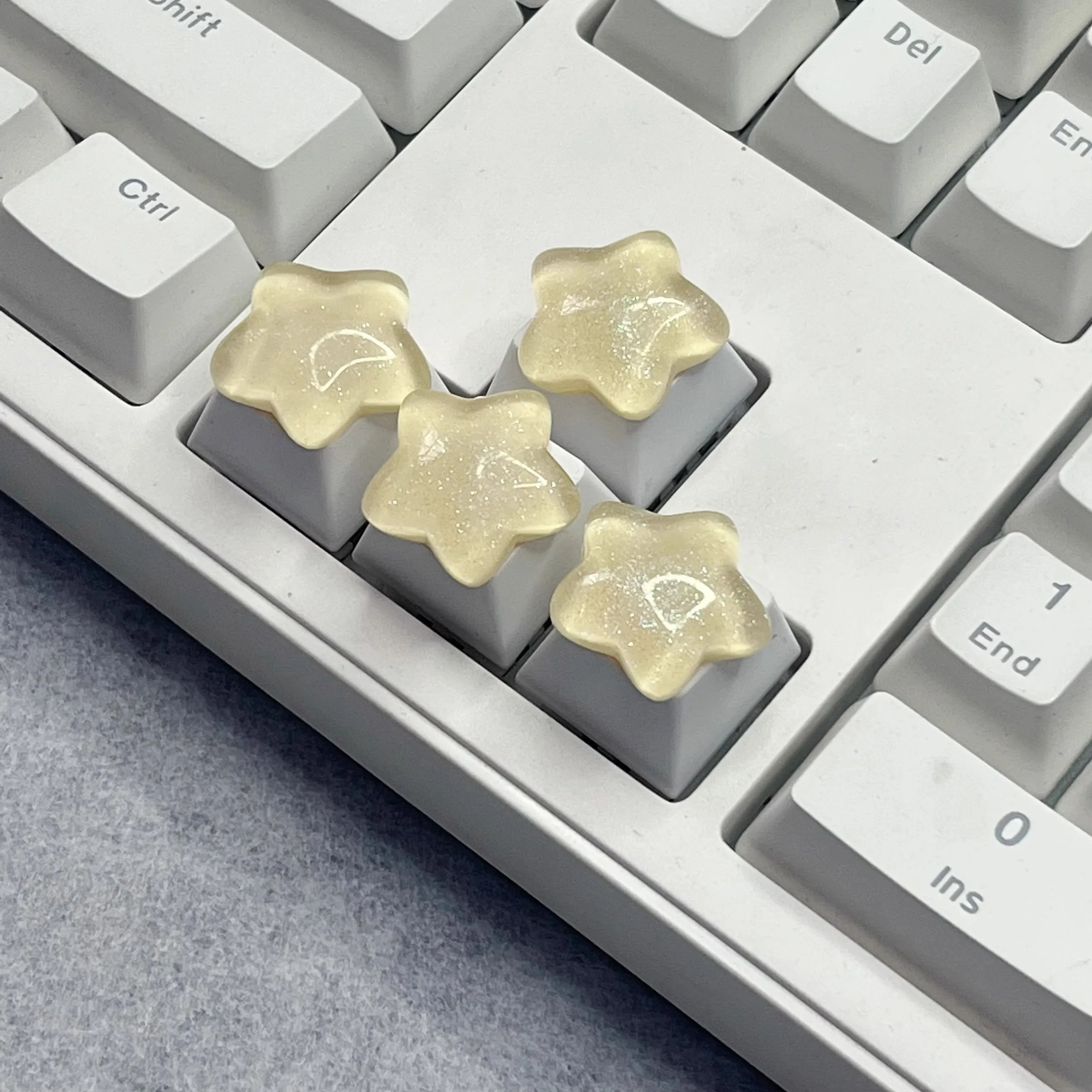 Tecla de teclado mecánico, 4 teclas de estrella fina y brillante, suplemento de resina de una sola pieza, reemplaza la tecla, teclas de teclado mecánico