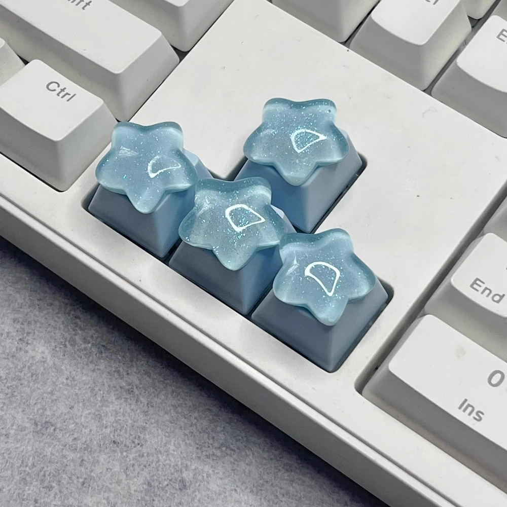 Tecla de teclado mecánico, 4 teclas de estrella fina y brillante, suplemento de resina de una sola pieza, reemplaza la tecla, teclas de teclado mecánico