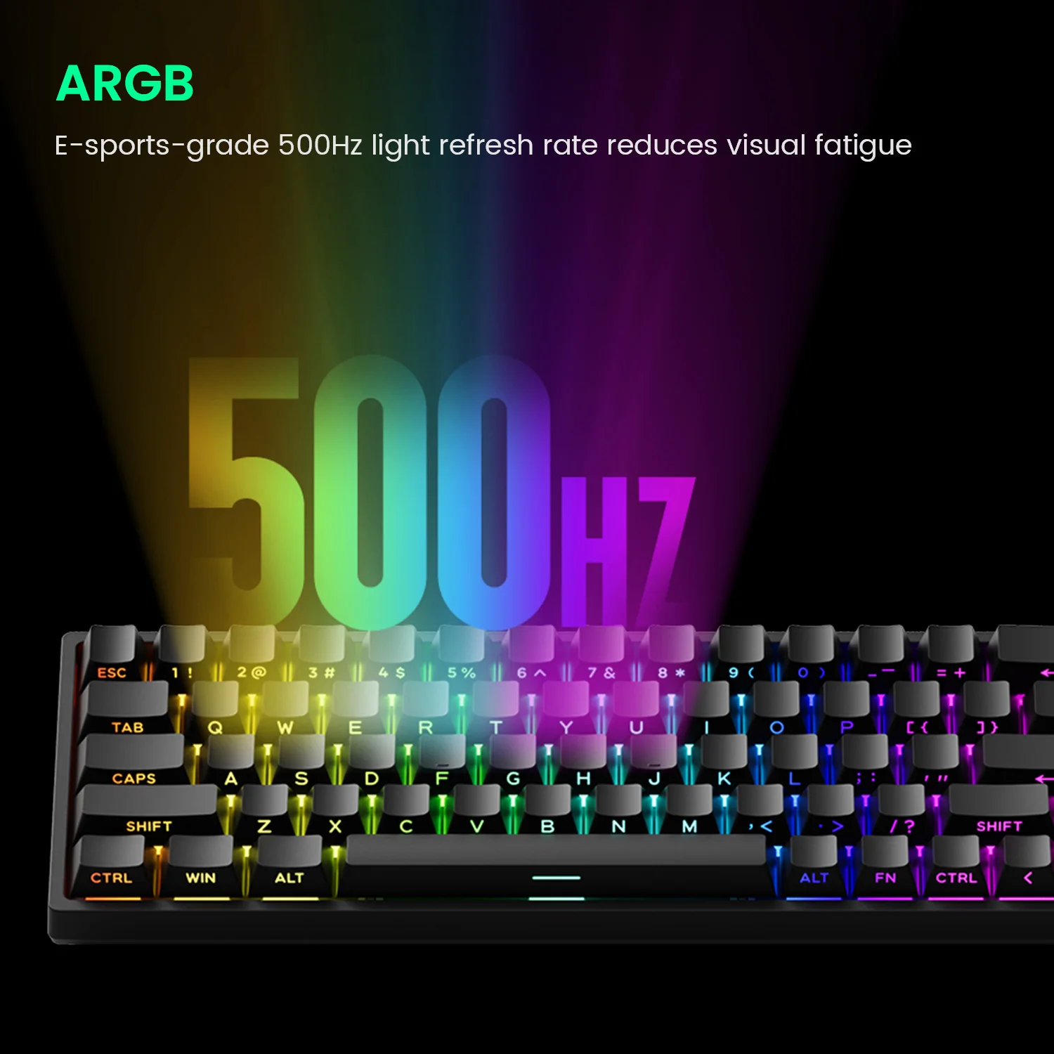 La serie FUN68 cuenta con ARGB (RGB direccionable) con LED controlados individualmente para una iluminación suave y sin parpadeos.Con la integración del canal Alpha y una frecuencia de actualización de 500 Hz, ofrece efectos dinámicos más ricos y reduce la fatiga visual, perfecto para juegos y creaciones estéticas.