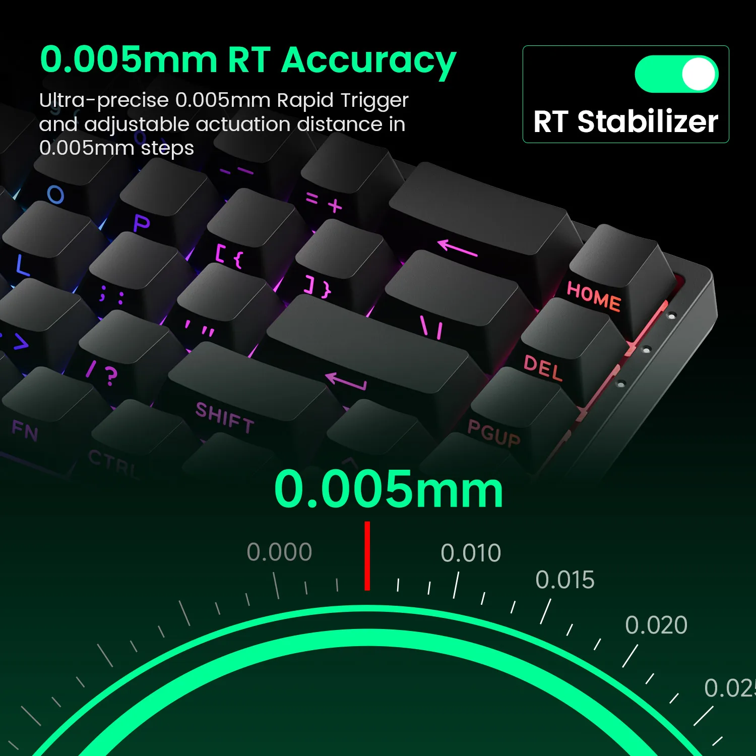 Logre un gatillo rápido ultrapreciso de 0,005 mm y una distancia de actualización ajustable en un paso de 0,005 mm.Esto permite a los usuarios ajustar su experiencia de escritura o juego, asegurando una activación óptima para tiempos de respuesta más rápidos con una precisión mejorada, ideal para juegos competitivos.