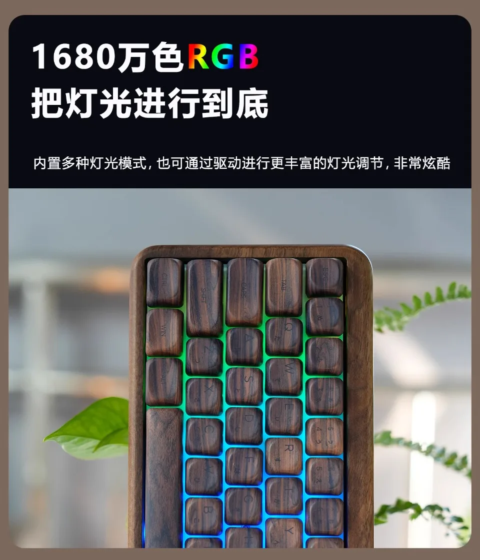Teclado mecánico GH60 de nogal, junta inalámbrica de tres modos, intercambio en caliente, RGB, PBT, teclado personalizado de 64 teclas para juegos de oficina, PC y portátil